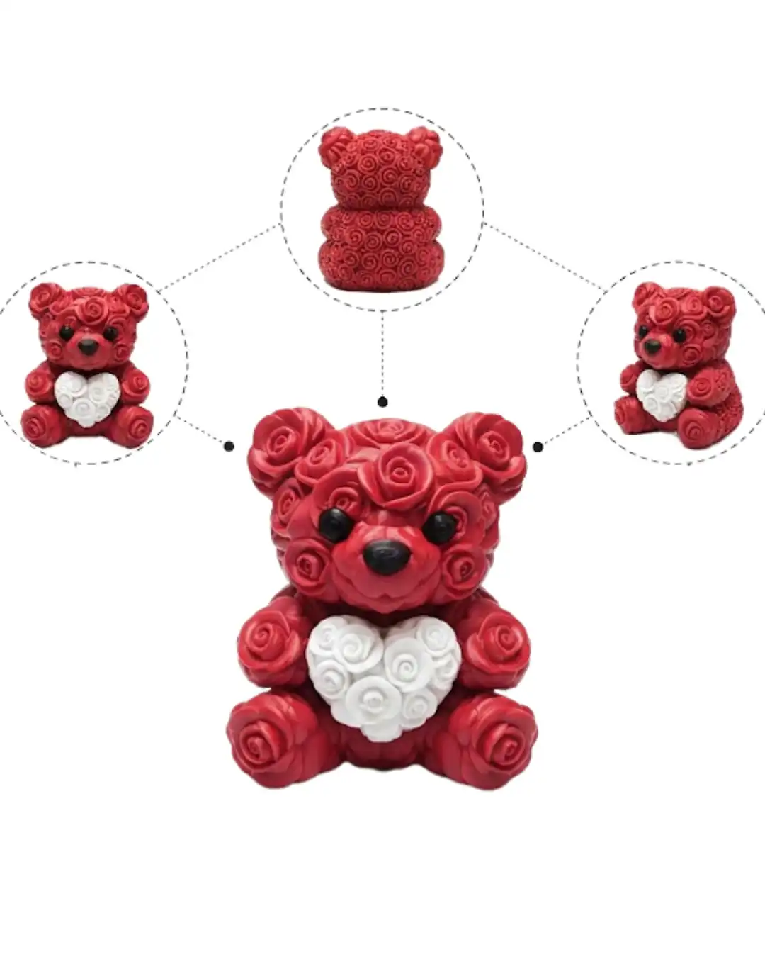 Romantik tasarımıyla öne çıkan 3D kalp ayıcık, 10 cm kompakt ölçüsü ile her alana uyum sağlar. Gül desenli yüzey yapısı ürüne es bir görünüm kazandırır.Sevgi temalı dekor arayanlar için ideal bir tercihtir.