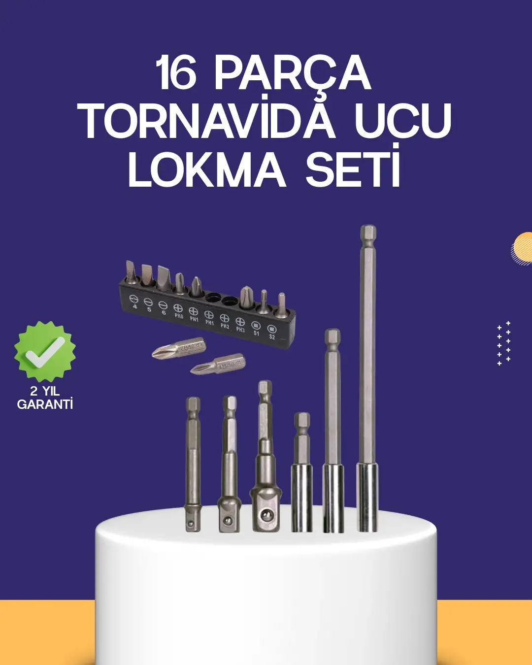 16 Parça Bits ve Adaptör Seti Vidalama Tamir Bakım Seti