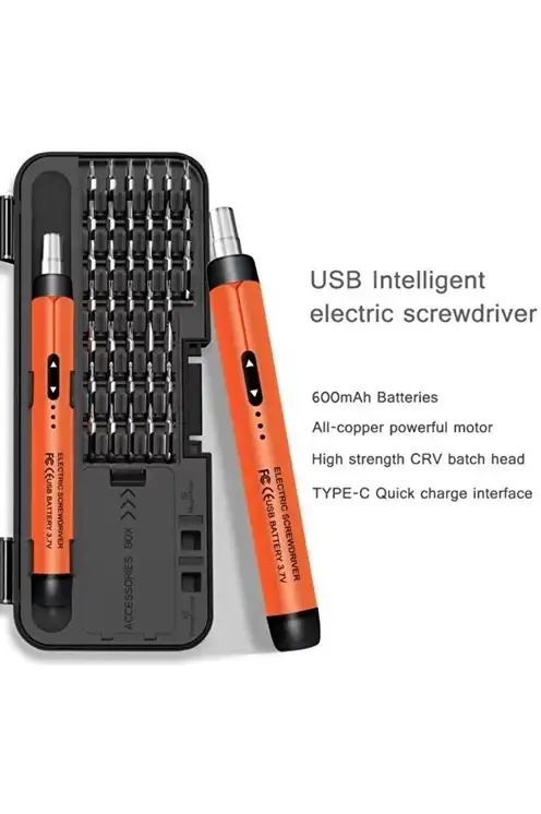 ÜRÜN AÇIKLAMASI Profesyonel Hassas Elektrikli Tornavida Seti Elektronik tamir, telefon sökme, laptop bakımı, saat ve gözlük onarımı için tasarlanmış kompakt ve güçlü mini elektrikli tornavida seti.