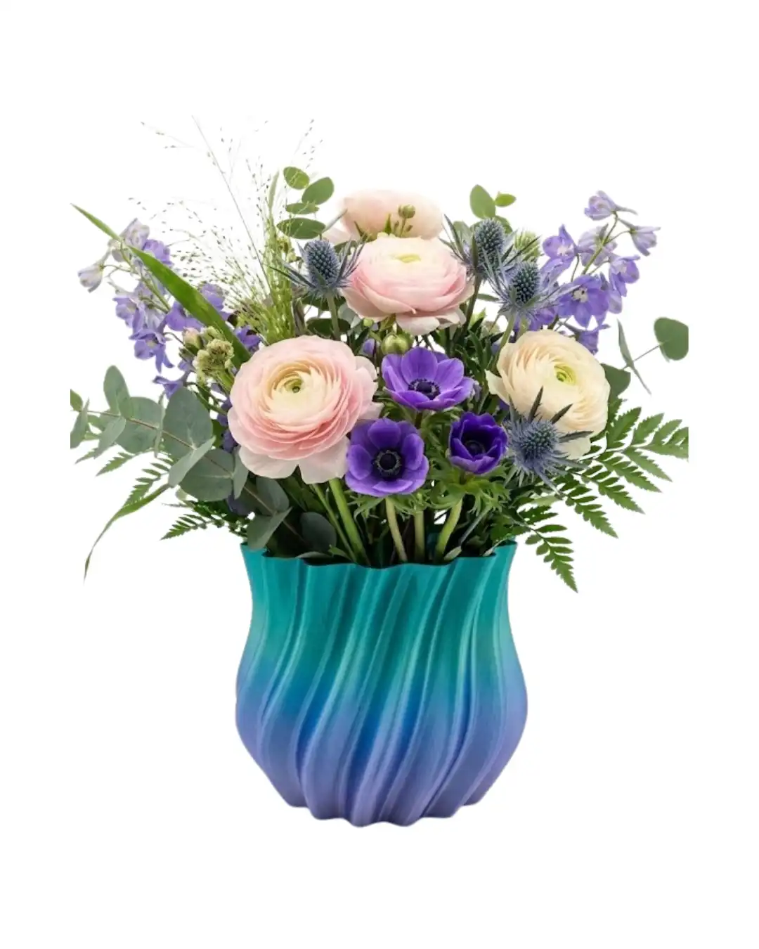 Es ve modern tasarımı bir araya getiren 3D kıvrımlı mavi vazo, yaşam alanlarına şıklık ve karakter katmak isteyenler için özel olarak tasarlanmıştır. Akışkan ve dalgalı formu sayesinde bulunduğu ortamda dikkat çekici bir odak noktası oluşturur. Mavi tonlarının huzur veren etkisi, özellikle sade dekorasyonlarda güçlü bir tamamlayıcı rol üstlenir.Kompakt yapısı sayesinde evin birçok farklı alanında kullanılabilir. Salon, yatak odası, çalışma alanı veya ofis dekorasyonunda rahatlıkla yer alır. Hafif yapısı sayesinde kolay taşınabilir ve farklı dekorasyon düzenlerine uyum sağlar.Ürünün kaliteli üretim yapısı, uzun süreli kullanım imkanı sunar. Kıvrımlı yüzey tasarımı, ışıkla etkileşime girerek görsel olarak zengin bir görünüm oluşturur. Bu sayede bulunduğu ortamda sıradanlıktan uzak, es bir atmosfer yaratır.Bu vazo yalnızca fonksiyonel bir ürün değil, aynı zamanda dekoratif bir sanat objesidir. Tek başına kullanıldığında bile bulunduğu ortamda şık bir görünüm oluşturur. Kurutulmuş çiçekler, dekoratif dallar veya yapay bitkiler ile birlikte kullanılarak farklı dekorasyon stillerine uyarlanabilir.Hem kişisel kullanım hem de hediye seçeneği olarak değerlendirilebilecek bu ürün, modern dekorasyon severler için vazgeçilmez bir parçadır.