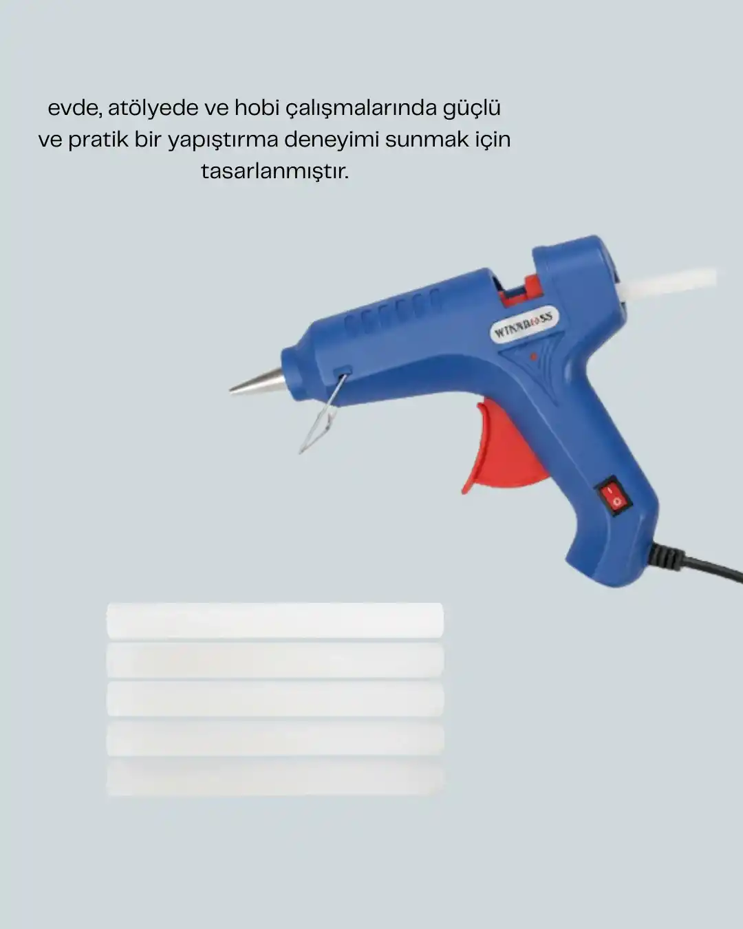 5 silikon hediyeli 40W sıcak silikon tabancası, ev ve hobi kullanımında vazgeçilmez bir yardımcıdır. Güçlü 40W motoru sayesinde silikon çubukları hızlıca eriterek zaman kazandırır. Paket içeriğinde yer alan 5 adet silikon, ürünü kullanıma hazır hale getirir.Ergonomik tasarımı sayesinde rahat kavrama sağlar ve uzun süreli çalışmalarda bile konfor sunar. Tetik mekanizması, silikon akışını dengeli biçimde ayarlamanıza yardımcı olur. Metal uç yapısı, düzgün ve temiz yapıştırmalar elde etmenizi sağlar.Sıcak silikon tabancası; tamirat, süsleme, el işi ve hobi projelerinde geniş kullanım alanına sahiptir. Çeşitli yüzeylerle uyumlu yapısı sayesinde çok yönlü kullanım imkânı sunar. Ev ortamında güvenle kullanılabilir.Isıya dayanıklı dış kasa, güvenli kullanım sağlar. Açma kapama düğmesi ile kontrol tamamen kullanıcıya aittir. Kompakt yapısı sayesinde kolay taşınır ve saklanır.5 silikon hediyeli bu sıcak silikon tabancası, pratikliği ve kullanım kolaylığı ile günlük işlerinizi zahmetsiz hale getirir.