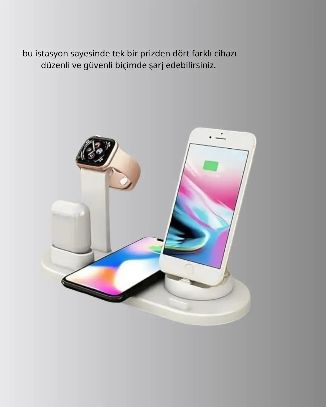 4’lü Apple Kablosuz Şarj Standı iPhone Watch ve AirPods Çoklu Şarjlı