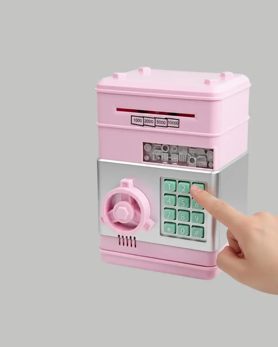 Bu büyük kapasiteli elektronik kumbara, çocuklara biriktirme alışkanlığı kazandırmak için ideal bir üründür. Otomatik çekme özelliği ve şifreli güvenlik sistemi ile öne çıkar.ABS plastikten üretilmiş sağlam gövdesi uzun ömürlüdür. Bozuk ve kâğıt lar için ayrı giriş alanları bulunur. Eğitici ve eğlenceli yapısı ile çocukların ilgisini çeker.