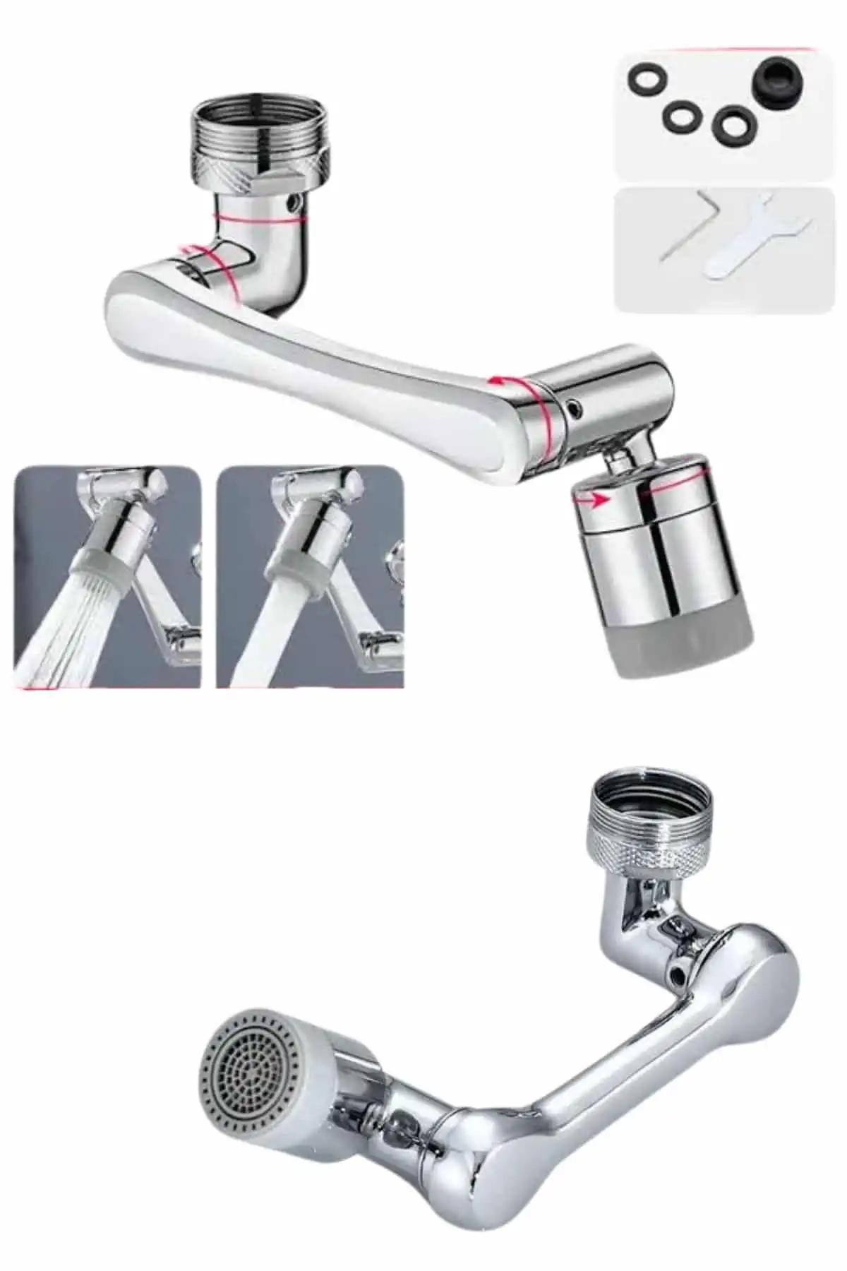 • Dönen Musluk Başlığı 1080 Derece Ayarlanabilir Filtreli Sprey Uç