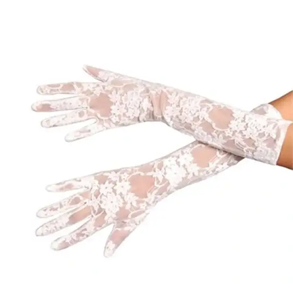 Dantelli Gece EldiveniUzun Boy Dantelli EldivenBeyaz RenkLikralıdırÜrün Ölçüsü : 40 cm Ürün Uzunluğu dirseğe kadar gelmektedirPakette 1 çift eldiven bulunmaktadır ( her iki kol için )