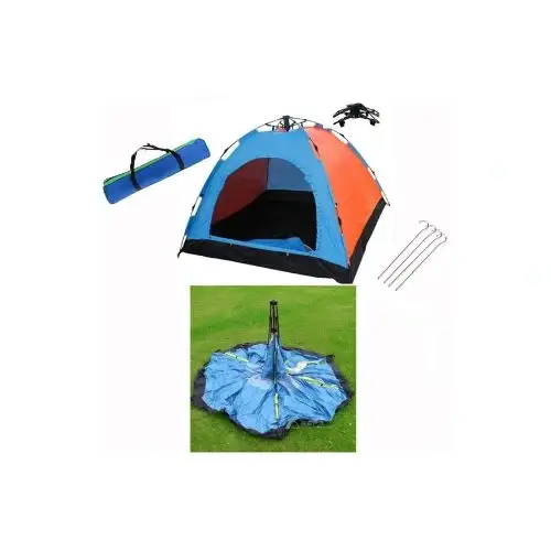 Kamp Çadırı 4 KişilikKOLAY KURULUM KAMP ÇADIRI 4 KİŞİLİKKolayKurulum Kamp Çadırı, rüzgar ve yağmur geçirmez !Otomatik 4 Kişilik Kamp Çadırı,şeklinde satılan birçok üründen daha büyüktür.KolayKurulum Kamp Çadırı, 200 * 200 * 135 cm. ölçüsüyledört-beş kişiye kadar içinde kalabileceğiniz bir ürün. Dağda, kampta, ormanda,tatilde, plajda, festivallerde çok rahat kullanabileceğiniz Kolay Kurulum KampÇadırı.Kolay Kurulum Kamp Çadırı, kampmaceralarına yeni başlayanlar için oldukça avantajlı bir ürün, hem çok kolaykuruluyor hem de ekonomik.Bu Kamp Çadırı Tam Olarak 1 Dakikaİçinde Kuruluyor ! ÜrünÖzellikleriKamp Çadırı sadece bir dakika içindekullanıma  hazır.Kolay Kurulum Çadır, üstteki ipiçekerek bağlı tüm direkleri hazır hale getirir.Esnek fiber çubuklar.Havalandırma gözü perdesi.Çok hafif ve portatif olduğu içinkolaylıkla kurabilir veya kaldırabilirsiniz.Güneşin altında kalmakistemiyorsanız çok ideal bir korunma aracıdır.Orjinal taşıma çantası.Tavan su geçirmez polyester kumaş.Taban  su geçirmez oxfordkumaş. 7.9 mm fiberglass çubuklarlar.Tek Kat. ÜrünÖlçüleri200 cm. *  200 cm.* 135 cm. Paketİçeriği1 Adet Kamp Çadırı 4 Kişilik  Not: Renkler stok durumuna göre olarak gönderilecektir.