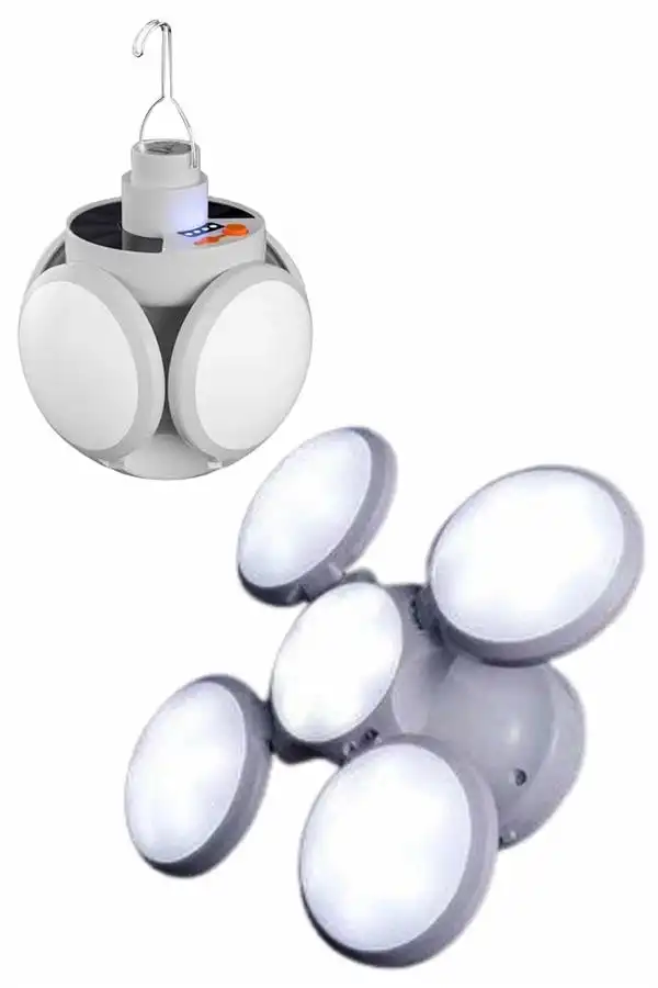 Solar Güneş Enerjisi ve USB Şarjlı 5 Kanatlı Taşınabilir Lamba – Çok Fonksiyonlu ve Pratik Aydınlatma ÇözümüHer türlü açık hava etkinliğinde, acil durumlarda veya günlük yaşamda ihtiyaç duyduğunuz her an pratik bir aydınlatma çözümü sunan Solar Güneş Enerjisi ve USB Şarjlı 5 Kanatlı Lamba, güçlü aydınlatma kapasitesi ve taşınabilir yapısıyla fark yaratır. Hem güneş enerjisiyle hem de USB ile şarj edilebilir özelliği sayesinde her koşulda güvenilir bir ışık kaynağı sağlar.Üzerindeki askı atı ile bu pratik lamba, çadırdan ağaca, arabanın içinde ya da evinizin çeşitli alanlarında kolaylıkla kullanılabilir. Katlanabilir tasarımı, ışık açısını istediğiniz gibi ayarlamanızı sağlayarak, geniş bir alanı etkili şekilde aydınlatmanıza olanak tanır. Bu özellik, özellikle dış mekan aktiviteleri ve acil durumlar için son derece kullanışlıdır.Solar panel sayesinde doğa dostu bir enerji kaynağı sunan bu lamba, 5.5V polikristal silikon güneş paneli ile şarj edilebilirken, USB kablosu ile de şarj edilerek her iki seçeneği de esnek şekilde kullanmanızı sağlar. Bu, size her koşulda enerji sağlamanın yanı sıra çevreye duyarlı bir kullanım deneyimi sunar.45 LED ışık kaynağı, 6 farklı ışık moduyla ortamınıza uygun ışık düzeyini ayarlamanızı sağlar. Hem güçlü ışık modlarında hem de düşük ışık ihtiyaçlarınızda kullanabileceğiniz 5 farklı ışık modu ile çok yönlü kullanım sağlar. Su geçirmez IP65 özelliği, dış mekan koşullarına karşı dayanıklıdır ve suya dayanıklı yapısıyla yağmurlu havalarda bile güvenle kullanılabilir.Teknik Özellikler:Güneş Paneli: 5.5V polikristal silikon güneş paneliPil: 18650 lityum pil, 2400mAhIşık Kaynağı: 45 LEDÇalışma Süresi: 6-8 saatŞarj Süresi: Solar şarj için 8 saat / USB şarj ile 6 saatŞarj Yöntemi: Solar şarj (DC 3.5V) / USB şarj (voltaj 4.5V)Su Geçirmezlik: IP65Renk Sıcaklığı: 6500KÜrün Boyutu: 14 cm * 11.5 cmPaket İçeriği:1 Adet 5 Kanatlı Solar Pratik LambaBu taşınabilir solar lamba, hem acil durumlarda hem de kamp, yürüyüş gibi açık hava etkinliklerinde her zaman yanınızda bulundurabileceğiniz, dayanıklı ve verimli bir aydınlatma aracıdır. Kolay şarj edilebilir ve pratik kullanımı ile ihtiyaç duyduğunuz her an size aydınlık sağlar.