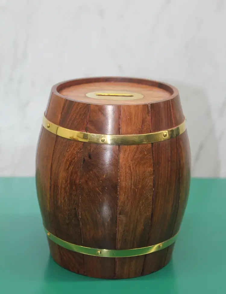 Pirinç Ahşap Fıçı Kumbara