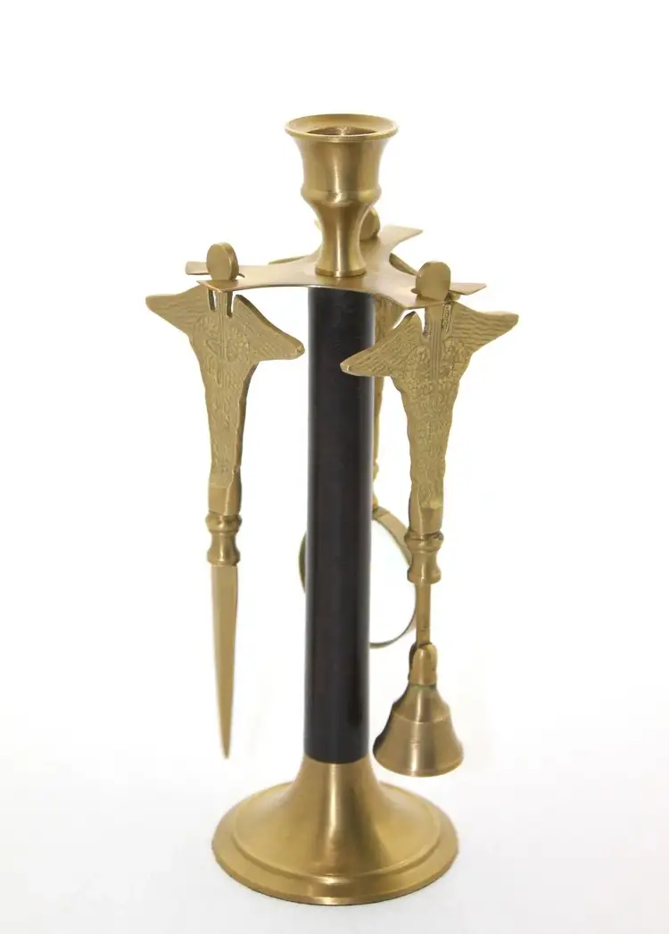PİRİNÇ MASA SETİÜrün ÖzellikleriPirinç masa seti, zarif bir tasarıma sahip şık bir ofis veya ev dekorasyon ürünüdür. Pirinç ve siyah ahşap malzeme kullanılarak üretilmiş olan bu masa seti, dikkatlice işlenmiş iki kanatlı figürle öne çıkar. Figürlerin zarif tasarımı, setin genel estetik bütünlüğüne katkı sağlar. Hem fonksiyonel hem de dekoratif olan bu set, masa üzeri aksesuar olarak kullanılabilir.Paket İçeriği1 Adet Pirinç Masa Seti