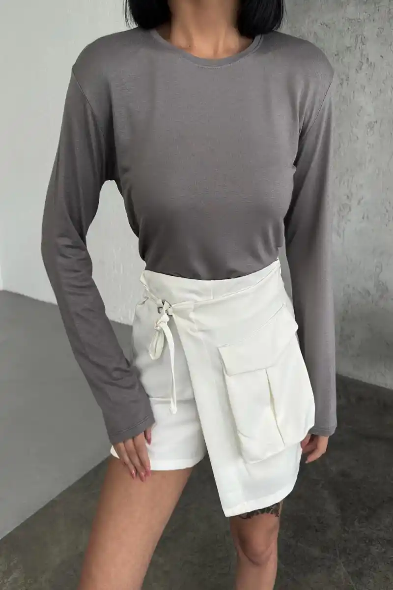-Öncelikle, bu body'nin füme rengi her türlü kombinasyonla mükemmel uyum sağlar. Fümenin zamansız şıklığı ile her mevsim ve her durumda tarzınızı yansıtabilirsiniz. Uzun kollu tasarımı, serin havalarda sizi sıcak tutarken, bisiklet yaka detayı da hafif bir zarafet katarak görünümünüzü tamamlar.