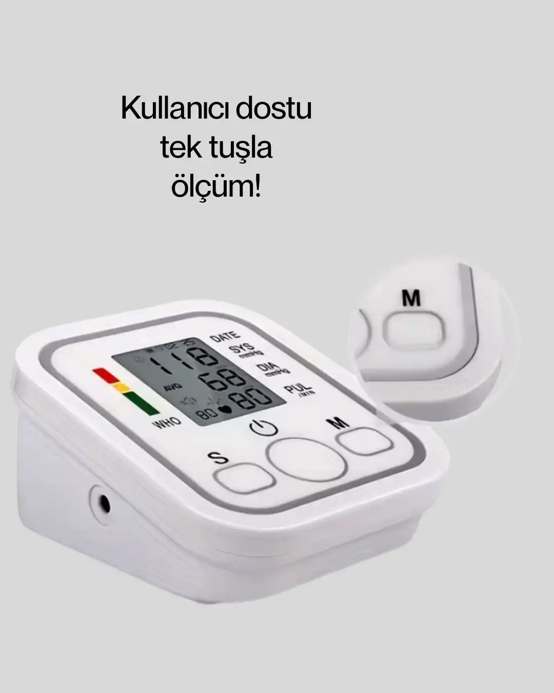 Dijital tansiyon ölçer cihazı, yüksek doğruluk oranı ve kullanıcı dostu tasarımı ile öne çıkıyor. 2 kullanıcı için ayrı ayrı 99 ölçüm hafızası bulunan bu cihaz, aile üyelerinizle birlikte kolayca kullanılabilir. Kan basıncı dalgalanmalarını düzenli şekilde takip ederek sağlığınızı kontrol altında tutabilirsiniz. LCD dijital ekranı sayesinde ölçüm sonuçlarını net ve okunabilir bir şekilde görmeniz mümkündür.Cihaz, IHB aritmi tespiti ile kalp ritminizdeki düzensizlikleri fark ederek olası riskleri önceden belirlemenize yardımcı olur. Nabız tarama ve osilometri yöntemleriyle ölçüm yapabilmesi, cihazın güvenilirliğini artırır. Ölçüm aralığı 20mmHg - 280mmHg arasında olup ±3mmHg hassasiyet sunar. Nabız doğruluğu ise ±%3 seviyesindedir.Taşınabilir yapısı ve 300 gr’lık hafifliği sayesinde evde, iş yerinde veya seyahatte kolayca kullanılabilir. Enerji ihtiyacı 4xAAA pil ile sağlanabileceği gibi, Android cihazlar için uyumlu USB şarj kablosu ile de kullanılabilir. Kutudan çıkan tansiyon bandajı ve kullanım kılavuzu ile herkes rahatlıkla cihazı kullanabilir. Sağlıklı yaşamı önemseyenler için bu tansiyon ölçer günlük kullanımda vazgeçilmez bir yardımcıdır.