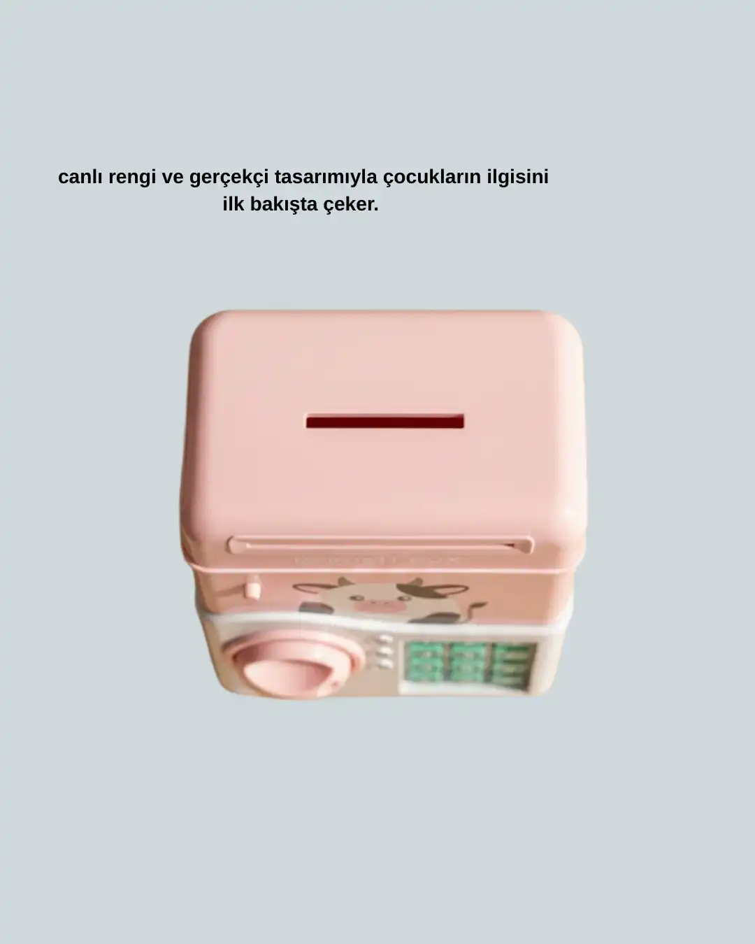Bu pembe ATM kasa tasarımlı elektronik kumbara, hem eğitici hem de dekoratif bir üründür. Kişisel şifre sistemi ile güvenli kullanım sağlar.Otomatik girişi, ışık ve ses efektleriyle birleşerek çocuklar için keyifli bir deneyim sunar. Doğum günü, bayram ve karne hediyesi olarak mükemmel bir seçenektir.