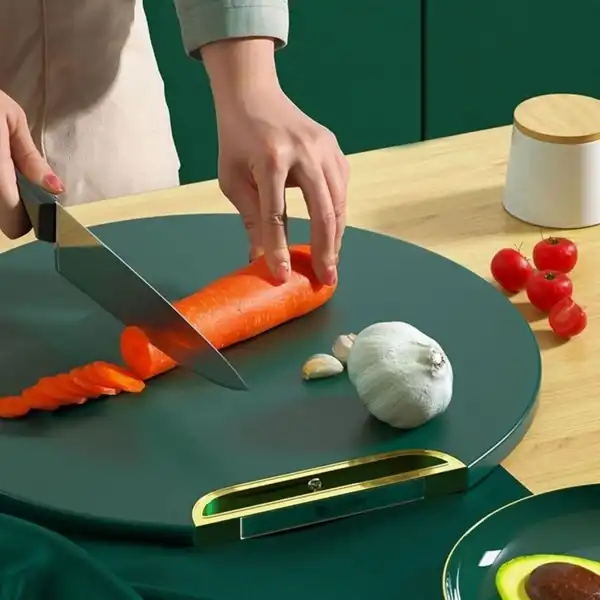 STANDLI KESİM PANOSUÜrün ÖzellikleriStandlı kesim panosu, mutfakta sebze, meyve, et, balık ve ekmek gibi farklı gıdaların doğranması için pratik ve güvenli bir kullanım sunar. Dayanıklı ve kaliteli malzemeden üretilmiş yapısı sayesinde bıçak darbelerine karşı dirençlidir ve uzun süre formunu korur. Standlı tasarımı, kesim panosunun mutfakta düzenli bir şekilde saklanmasını sağlar ve kullanım sırasında kolay erişim imkânı sunar. Farklı gıdalar için ayrı ayrı kullanılabilmesi, çapraz bulaşma riskini azaltarak daha hijyenik bir mutfak ortamı oluşturur. Düz ve geniş yüzeyi, rahat kesim yapmaya yardımcı olurken dengeli yapısı kaymayı minimum seviyeye indirir. Kullanım sonrası kolayca temizlenebilir ve hem elde yıkamaya hem de bulaşık makinesinde yıkamaya uygundur. Fonksiyonel tasarımı sayesinde mutfakta hem düzen hem de kullanım kolaylığı sağlar.Paket İçeriği1 adet standlı kesim panosu
