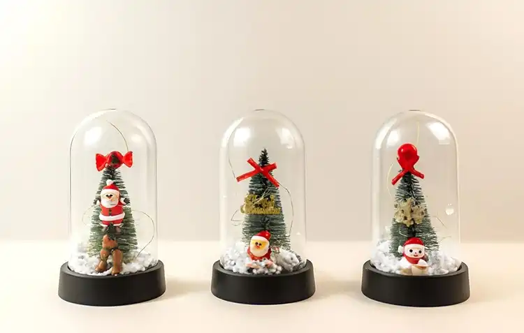 Yılbaşı Temalı Işıklı Dekoratif Cam Fanus - Model 2