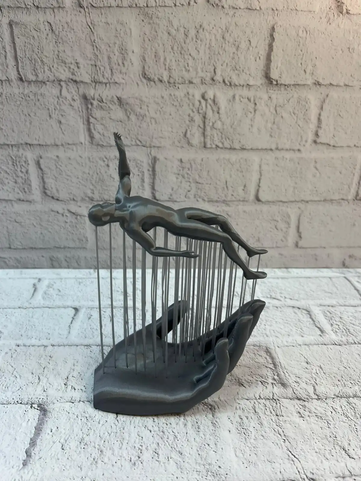 3D El Üzerinde İnsan Figürü Gri Minimal Masa Üstü Dekor