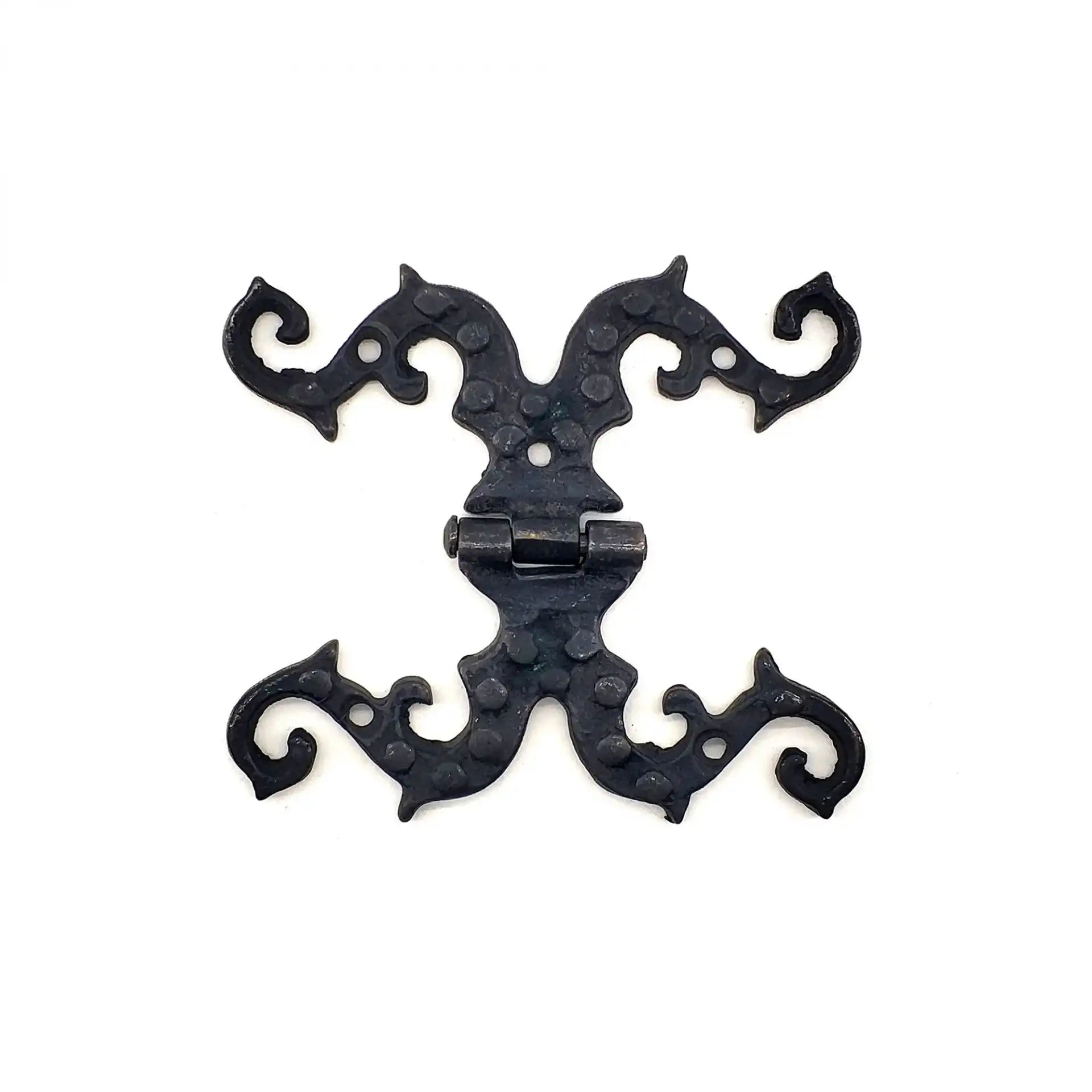 • Antika Tarz Dekoratif Pirinç Süslü Menteşe - 100x90 Mm, Oksit