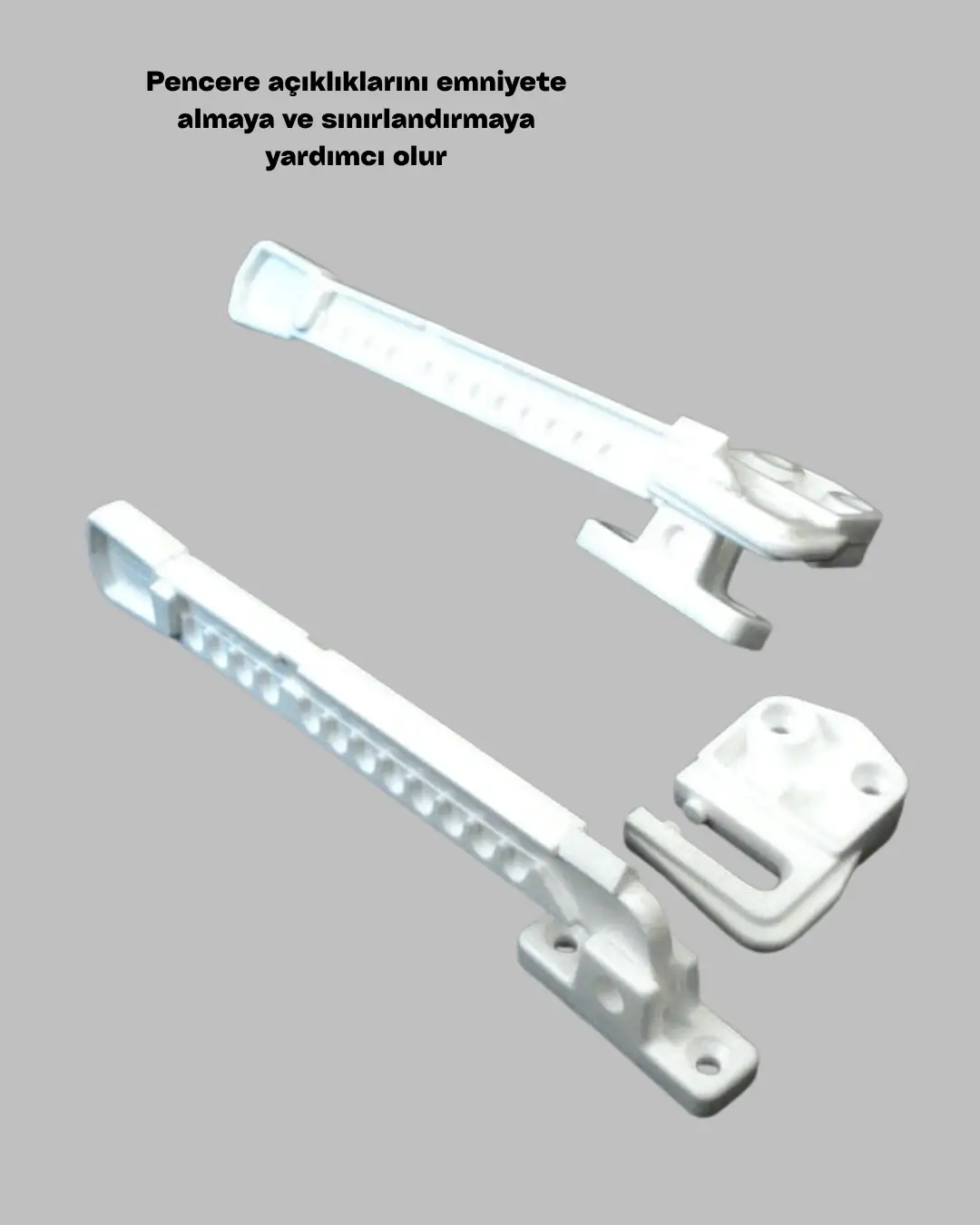 Pencere açılma kontrol atı, ev güvenliğini artırmak aıyla tasarlanmıştır. Pencerenin belirli bir noktadan fazla açılmasını engelleyerek kontrollü havalandırma sağlar.Kompakt ve kullanışlı yapısı sayesinde pencere estetiğini bozmaz. Kolay montaj özelliği ile herkes tarafından rahatlıkla uygulanabilir. Paket içeriğinde 2 adet ürün bulunmaktadır.
