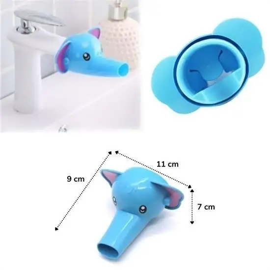 - Uzun ömürlü Fil figürlü musluk uzatıcı ve genişletici başlık sayesinde çocuklara el yıkama alışkanlığı kazandırmak bu sevimli aparatlarla çok daha kolay olacaktır