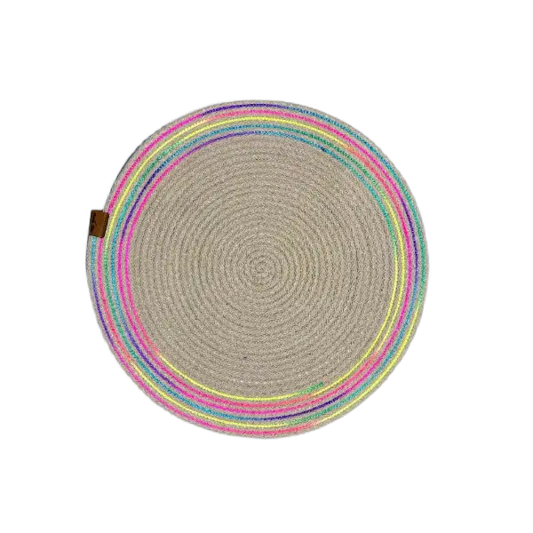DecoHandy 39cm Neon Renkli Şeritli Jüt Örme Supla Amerikan Servis