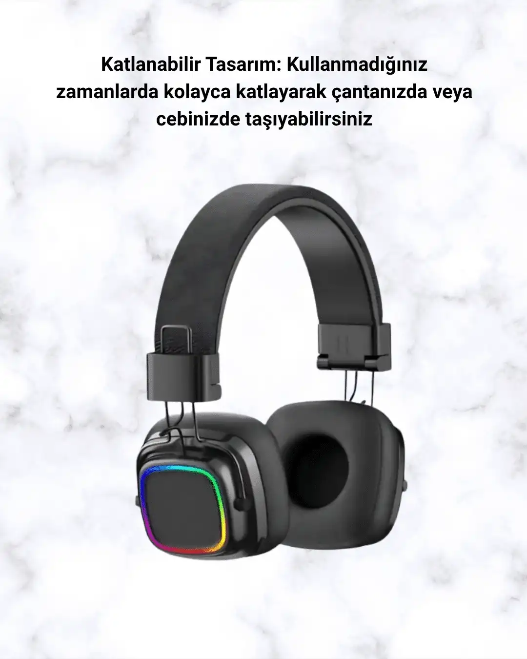 • Kablosuz RGB Işıklı Katlanabilir Bluetooth Kulak Üstü Kulaklık
