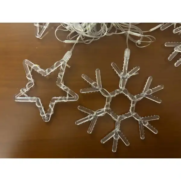 KAR TANESİ PERDE LEDÜrün ÖzellikleriKar Tanesi Perde LED ışık sistemi, yılbaşı, özel gün dekorasyonları ve iç-dış mekân süslemeleri için tasarlanmış şık ve etkileyici bir aydınlatma ürünüdür. Toplamda 10 saçaktan oluşan bu modelde 5 adet yıldız ve 5 adet kar tanesi formundaki LED’ler sıcak ışık yayıp ortama büyüleyici bir ambiyans katar. Fişli ve eklemeli yapısı, birden fazla setin birbirine kolayca bağlanmasına olanak tanırken 8 farklı ışık fonksiyonu sayesinde dekorasyon tarzınıza uygun aydınlatmayı seçmenizi sağlar. Şeffaf kablo yapısı tüm dekorasyonlarda temiz ve estetik bir görüntü sunar. Hem iç mekânda hem dış mekânda kullanılabilir olması sayesinde balkon, vitrin, cafe, bahçe, pencere ve perde süslemelerinde güvenle tercih edilir. Enerji tasarruflu LED teknolojisi ile uzun ömürlü kullanım sunar.Paket İçeriği1 Adet Kar Tanesi Perde LED