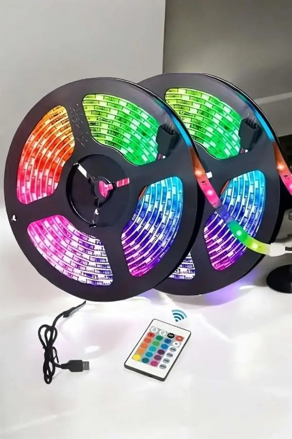 Kumandalı Şerit LED, dekoratif aydınlatma ve pratik kullanım özellikleriyle yaşam alanlarınızı renklendirmenin en ideal yoludur. 5 Metre Uzunluk: Geniş alanlarda etkili aydınlatma sağlar. Esnek yapısıyla farklı yüzeylere kolayca uyum sağlar ve gerektiğinde kesilebilir. Renkli Aydınlatma ve Modlar: Kumandası sayesinde renk değişimi, parlaklık ayarı ve 4 farklı aydınlatma modu (strobe, fade, smooth, flash) ile kişiselleştirilmiş bir ışık deneyimi sunar. Suya ve Toza Dayanıklı: Dayanıklı tasarımı sayesinde hem iç mekanlarda hem de dış mekanlarda güvenle kullanılabilir. Enerji Tasarruflu: LED teknolojisi, düşük enerji tüketimi sağlayarak hem çevre dostu hem de ekonomik bir kullanım sunar. Kolay Kurulum: Yapışkanlı bandı ile LED şeridi zahmetsizce istediğiniz yüzeye uygulayabilir ve hemen kullanmaya başlayabilirsiniz.Kullanım Alanları: Ev dekorasyonu (oturma odası, yatak odası, mutfak) TV arkası ambiyans aydınlatması Parti ve etkinliklerde dekoratif ışıklandırma Ofis ve işyeri dekorasyonu Bahçe ve dış mekan süslemeleriPaket İçeriği: 5 metre şerit LED Uzaktan kumanda Güç adaptörü Kontrol kutusuEvinizin veya etkinliklerinizin havasını tamamen değiştirecek Kumandalı Şerit LED, es tasarımı ve üstün performansıyla vazgeçilmez bir aydınlatma çözümüdür!