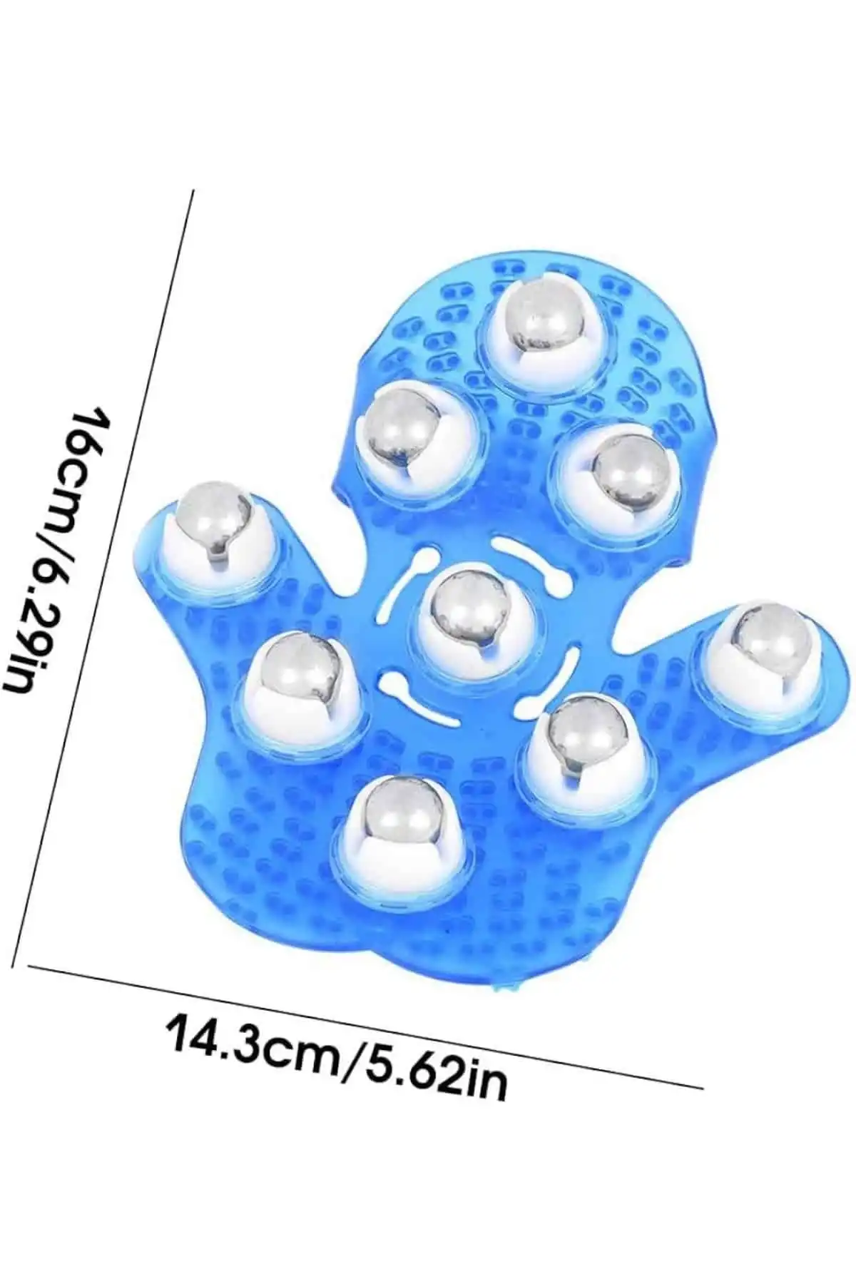 Yoğun tempolu günlerin ardından kendinize küçük ama etkili bir rahatlama seansı sunmak ister misiniz? 9 bilyeli masaj eldiveni, özel el şeklindeki ergonomik tasarımı sayesinde vücudunuzun tüm bölgelerinde etkili bir masaj deneyimi sunar. Üzerindeki 360 derece dönebilen 9 adet metal bilye, doğru basınç noktalarına odaklanarak kaslarınızı gevşetir, kan dolaşımını hızlandırır ve günün yorgunluğunu üzerinizden alır.Kullanımı oldukça pratik olan bu ürünle, ekstra bir yardım almadan kendinize rahatlatıcı bir masaj yapabilirsiniz. Eldivenin arka kısmında yer alan ayarlanabilir kemer detayı, her el yapısına kolayca uyum sağlar. İster kitap okurken, ister televizyon izlerken, ister bilgisayar başında otururken bile kullanabileceğiniz bu masaj eldiveni; yüz, boyun, sırt, bacak ve kol gibi bölgelerde rahatlıkla uygulanabilir.Düzenli kullanımda vücudun sıkılaşmasına katkıda bulunur, cildi canlandırır ve yüz masajı sırasında sarkmaları azaltmaya yardımcı olur. Masaj keyfini her an ve her yerde yaşamanız için tasarlanan bu ürün, farklı renk seçenekleriyle olarak gönderilir.Paket İçeriği:1 adet Bilyeli Masaj EldiveniÜrün Ölçüleri:Boy: 16 cmEn: 15 cmYükseklik: 4.5 cmAğırlık: 99 g