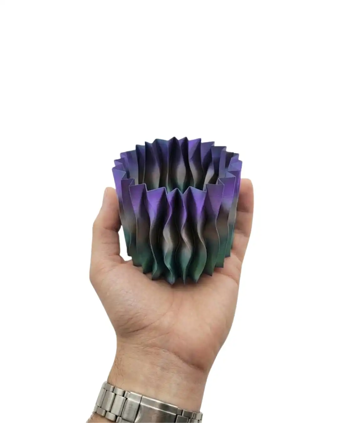 Es dalga form tasarımlı mor 3D dekoratif vazo, modern dekorasyon anlayışını yansıtan şık ve dikkat çekici bir dekoratif üründür. Dalgalı yüzey yapısı sayesinde klasik vazolardan farklı bir tasarım sunar ve bulunduğu ortamda modern bir dekoratif obje olarak öne çıkar.3D baskı teknolojisi kullanılarak üretilen bu dekoratif vazo, yüzeyindeki dalgalı tasarım sayesinde ışık ile farklı açılarda farklı gölgeler oluşturarak dekoratif bir derinlik hissi yaratır. Bu sayede ürün yalnızca bir vazo değil aynı zamanda sanatsal bir dekoratif obje olarak da değerlendirilebilir.Mor renk tonları dekorasyonda zarif ve es bir görünüm oluşturur. Bu nedenle mor dekoratif vazo özellikle modern, minimalist ve sanatsal dekorasyon stilleri ile uyum sağlayabilecek bir tasarıma sahiptir.Dekoratif mor 3D vazo özellikle kuru çiçekler, dekoratif bitkiler veya minimal bitki düzenlemeleri için oldukça uygun bir kullanım sunar. Bunun yanında masa dekoru veya raf dekoru olarak da kullanılabilir.Salon, çalışma odası, kitaplık veya ofis masası üzerinde kullanıldığında bulunduğu ortama modern ve es bir atmosfer kazandırır. Minimalist dekorasyon ve modern dekorasyon stilleri ile uyumlu bir kullanım sunar.Dekoratif 3D mor vazo aynı zamanda dekoratif hediye alternatifi olarak da tercih edilebilir. Ev hediyesi, yeni ev hediyesi veya doğum günü hediyesi olarak oldukça şık bir seçenektir.Modern tasarımı, es görünümü ve sanatsal formu sayesinde dalgalı tasarımlı mor 3D dekoratif vazo yaşam alanlarında dikkat çeken şık bir dekoratif aksesuar olarak öne çıkar.