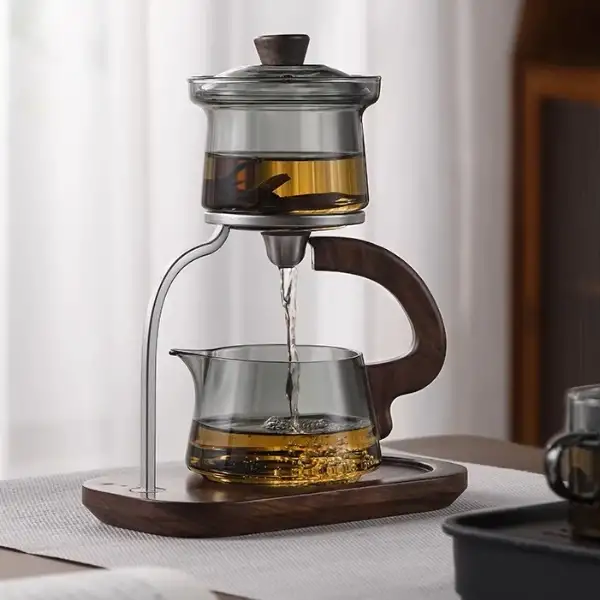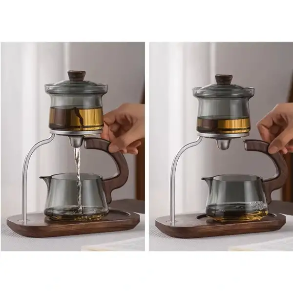 OTOMATİK MANYETİK BOROSİLİKAT DEMLİK SETİÜrün ÖzellikleriZarif tasarımı ve yenilikçi yapısıyla öne çıkan Otomatik Manyetik Borosilikat Demlik Seti, çay keyfini şıklık ve pratiklikle buluşturur. Isıya dayanıklı borosilikat cam malzemeden üretilmiş olup, yüksek sıcaklıklara karşı dirençlidir ve uzun ömürlü kullanım sağlar. Şeffaf cam yapısı sayesinde demlenme sürecini kolayca takip edebilirsiniz.Manyetik otomatik akış sistemiyle donatılan üst demlik, alt hazneye çayı kontrollü bir şekilde aktarır. Bu özellik, hem taşırmadan hem de damlatmadan pratik kullanım imkânı sunar. Modern tasarımlı ahşap taban ve metal destekli standı, mutfakta veya misafir sofralarında dekoratif bir görünüm oluşturur.Ergonomik tutma sapı sayesinde güvenli kullanım sağlar. Hem siyah çay hem bitki çayları için uygundur. Günlük kullanımda ya da özel davetlerde estetik ve konforu bir araya getirir.Paket İçeriği1 adet Otomatik Manyetik Borosilikat Demlik Seti