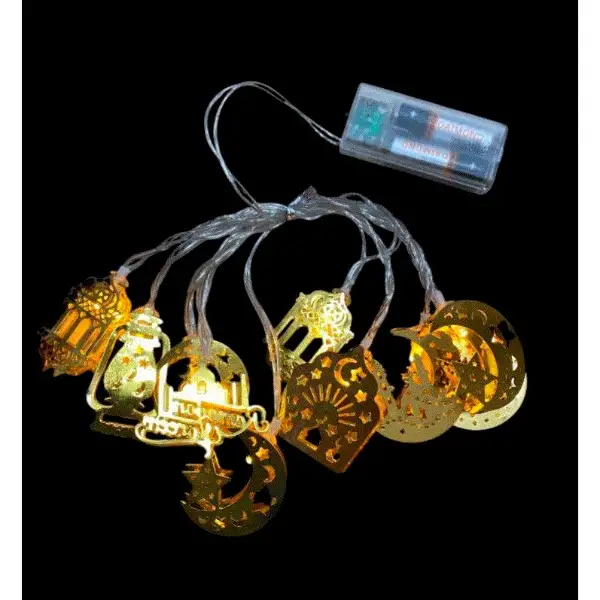 RAMAZAN TEMALI KARIŞIK FİGÜRLÜ DEKORATİF LED IŞIK 2 METREÜrün ÖzellikleriRamazan Temalı Figürlü Dekoratif LED Işık, Ramazan ayının manevi atmosferini yaşam alanlarına taşımak için özel olarak tasarlanmıştır. Ay, yıldız, cami, fener ve Ramazan yazılı figürlerden oluşan tasarımı sayesinde tek tip bir görüntü yerine zengin ve dikkat çekici bir dekorasyon sunar. Gold metal figürler, LED ışıkların yaydığı sıcak sarı tonla birleşerek ortama huzurlu ve estetik bir ambiyans kazandırır. 2 metre uzunluğundaki esnek kablosu sayesinde pencere kenarlarında, duvarlarda, perde önlerinde, masa üstlerinde, raflarda veya vitrin süslemelerinde rahatlıkla kullanılabilir. Pille çalışan yapısı priz ihtiyacını ortadan kaldırır ve kullanım alanını tamamen özgür hale getirir. Hafif ve dayanıklı malzemeden üretilmiş olması sayesinde kolayca taşınabilir ve uzun süreli kullanım sağlar. Ev dekorasyonunun yanı sıra kafe, restoran, mağaza vitrinleri ve Ramazan organizasyonları için de ideal bir dekoratif aydınlatma çözümüdür. Kurulumu son derece pratik olup, ekstra ekipman gerektirmeden kısa sürede kullanıma hazır hale gelir.Paket İçeriği1 adet Ramazan Temalı Figürlü Dekoratif LED Işık 2 Metre