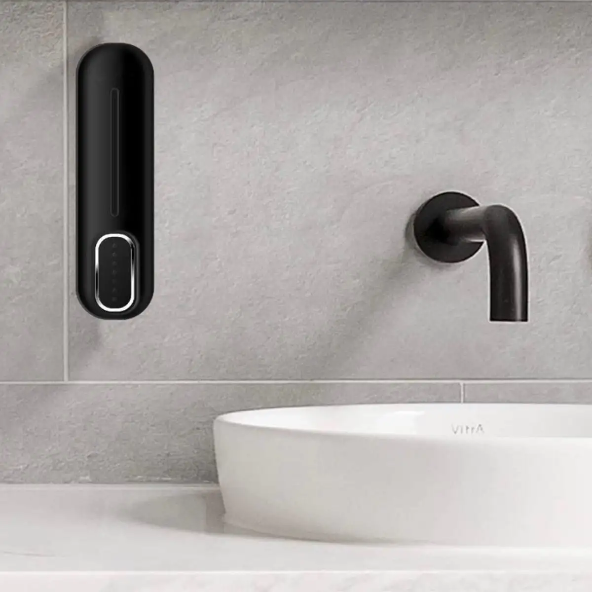 Bu siyah duvara monte köpük sabunluk dispenser, modern ve şık tasarımıyla banyo veya mutfaklarınıza estetik bir dokunuş katarak hijyenik kullanım sunar.