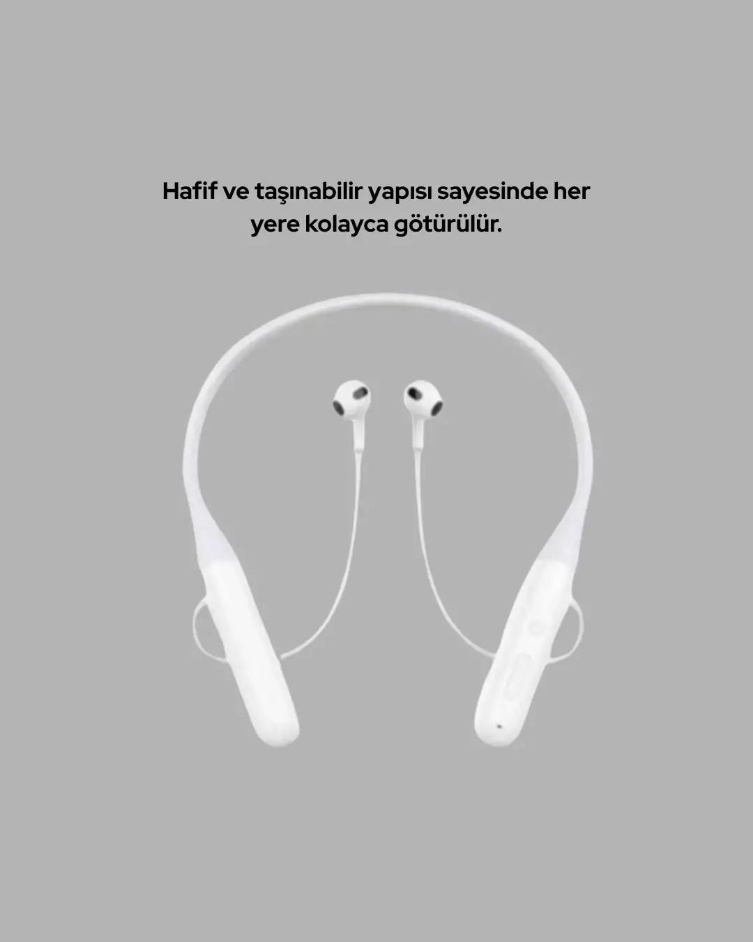 Modern tasarımı ve fonksiyonel özellikleriyle bu kablosuz kulaklık, günlük kullanımda ihtiyaç duyduğunuz tüm beklentileri karşılar. 100 saatlik pil ömrü ile kesintisiz kullanım imkânı sunar. Boyun askılı tasarım kulaktan düşmeyi engeller ve konfor sağlar. Bluetooth bağlantısı sayesinde mobil cihazlar, bilgisayarlar ve tabletlerle hızlıca eşleşir. Ses kalitesi güçlü ve dengeli olup hem müzik dinlerken hem de telefon görüşmelerinde net bir iletişim sağlar. Ergonomik kulak uçları dış ortam gürültüsünü azaltır ve uzun süreli kullanımda rahatsızlık vermez. Manyetik başlık özelliği kulaklığı kullanmadığınızda güvenle sabitler. USB üzerinden kolay şarj edilen cihaz, hem hafif hem de dayanıklı yapısıyla uzun ömürlü bir çözümdür. Spor, seyahat ve günlük yaşam için ideal olan bu model, pratikliğiyle öne çıkar.