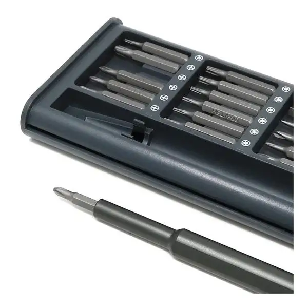 • * Ana renk: koyu gri (resim gösterisi olarak) Paket içeriği: 1 x tutucu 24 x tornavida uçlarıTornavida modeli:Phillips: PH0,PH00,PH000,PH1,PH2Torx: T2,T3,T4,T5,T6,T8,T10,T15Oluklu: SL1.5,SL2.0,SL3.0,SL4.0Beş yıldız: 0.8,1.2Y tipi: Y1Hex: H1.5,H2.0Üçgen: 2.3U tipi: 2.6