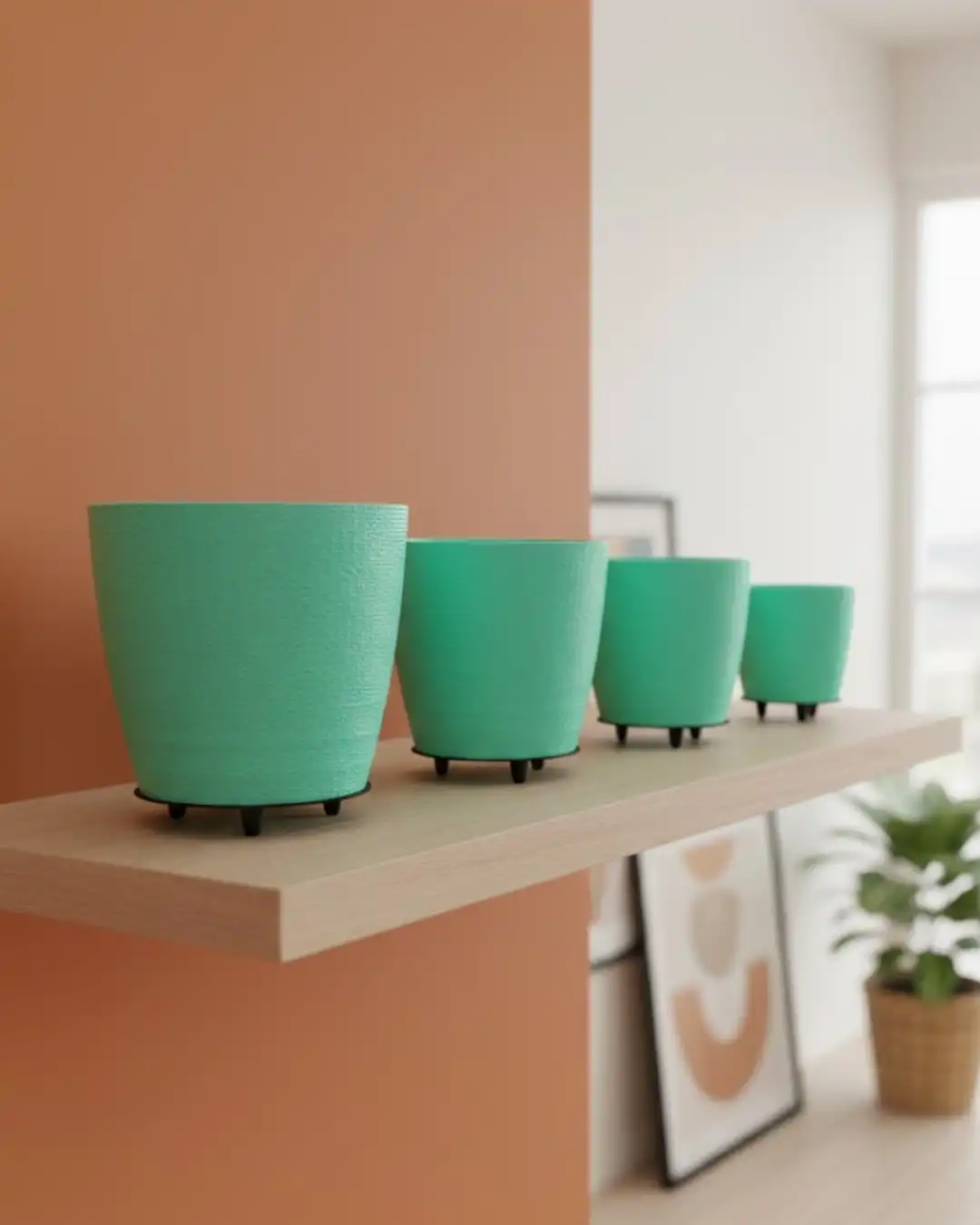 • 4’lü 3D Modern Yeşil Vazo Seti Dekoratif Ayaklı Saksı Takımı