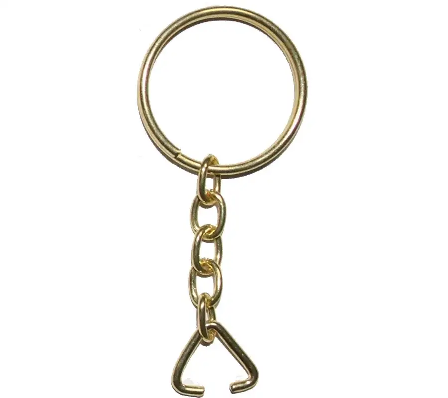 • Anahtarlık Halkası, Halka + Zincir + Üçgen, 24mm, Altın, Sarı, 1000 Adet