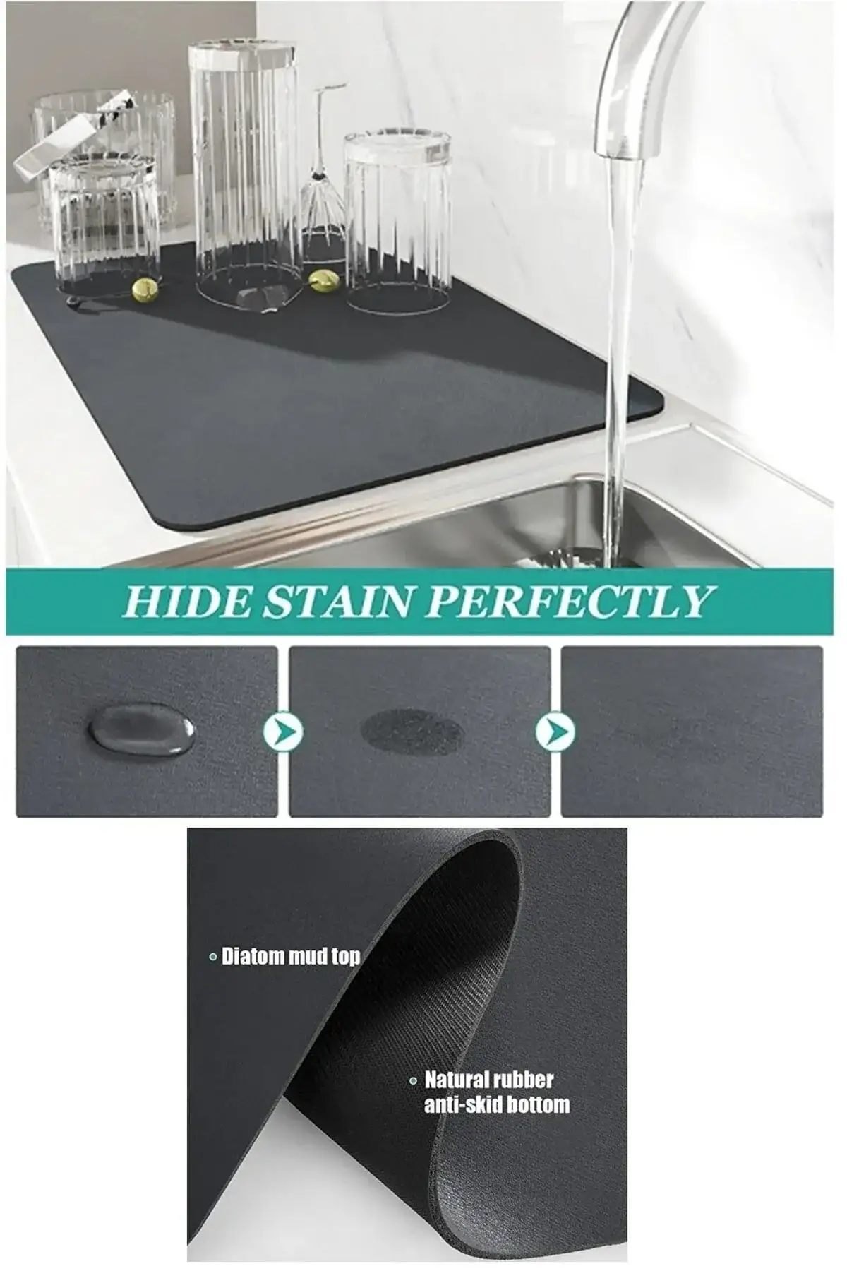 ÇOK AMAÇLI MATÜrün nappa deriden üretilmiş olup su emme özelliğine sahiptir.Alt, etkili bir kayma önleyici işlevi olan kaymaz kauçuktur. Kolay saklama için serbestçe kıvrılabilir.Sıradan matlardan çok daha hızlı bir şekilde kurur.Zemini sımsıkı kavrar ve kaymaz.Güçlü su emme özelliği.Ürün Ölçüleri: 40 cm. x 50 cm.Paket İçeriği: 1 adet çok amaçlı mat