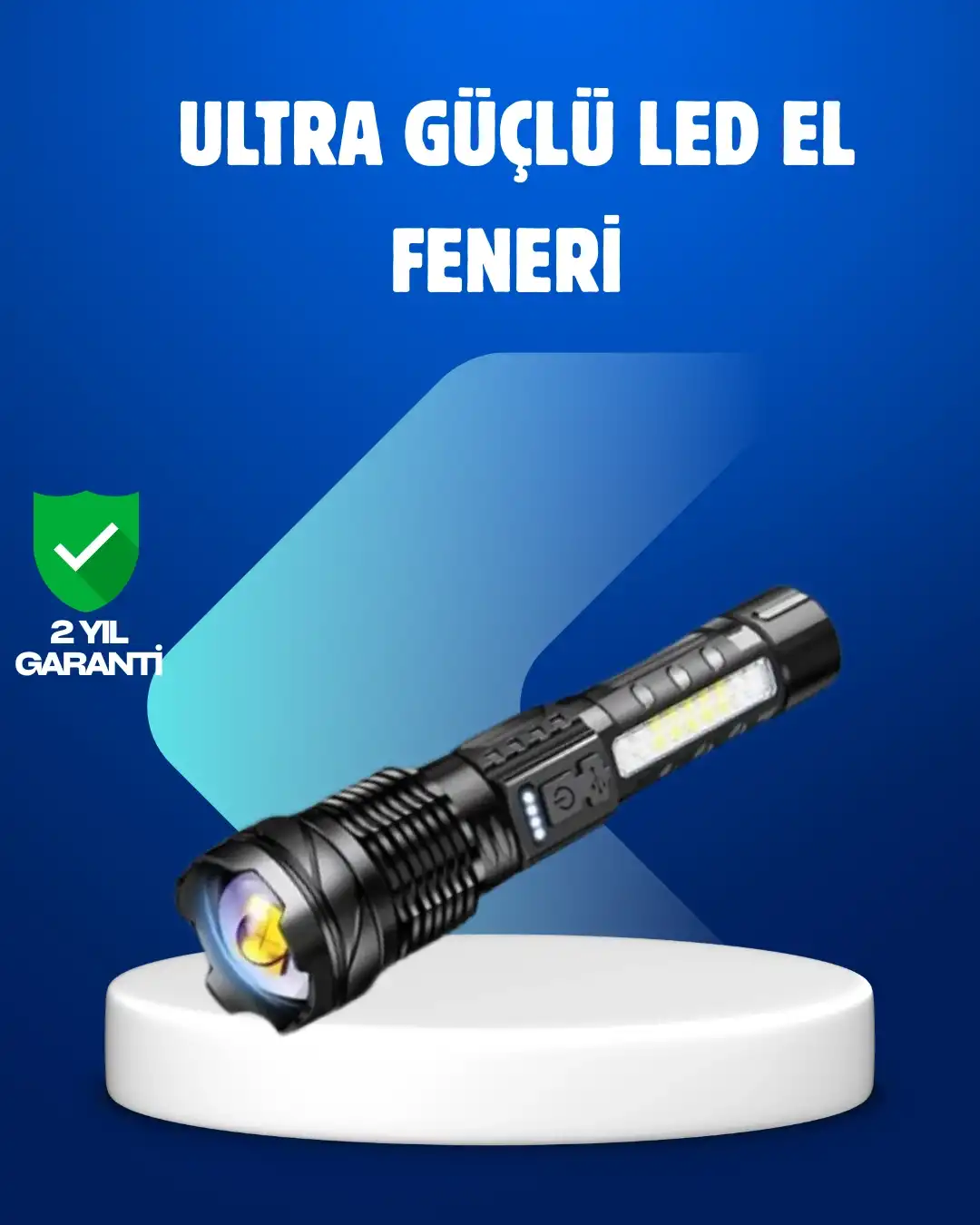 Şarjlı LED el feneri, güçlü ana LED’i ve yan COB ışığı ile çok yönlü kullanım sunar. Yan aydınlatma özelliği, tamirat ve yakın mesafe aydınlatmalarında büyük kolaylık sağlar. Yüksek lümen değeri sayesinde karanlık alanları kısa sürede aydınlatır.Ergonomik gövde tasarımı sayesinde elde rahat tutulur. Kamp, avcılık, balıkçılık ve araç içi kullanımlar için uygundur. Uzun süreli kullanım için tasarlanmış dayanıklı bir üründür.