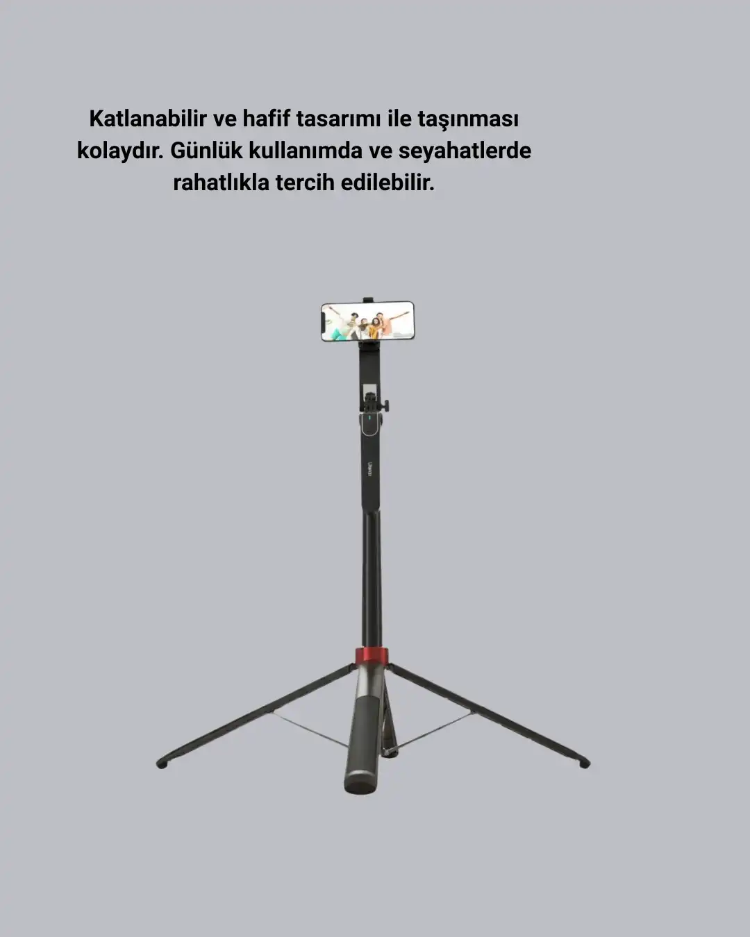 Bu set, profesyonel ses ve stabil görüntü arayan içerik üreticileri için özel olarak bir araya getirilmiştir. Çift mikrofonlu kablosuz yaka mikrofonu sistemi, iki konuşının bulunduğu çekimlerde dahi net ve dengeli ses kaydı alınmasını sağlar. iPhone cihazlarla tam uyumlu yapısı sayesinde alıcıyı Lightning girişine takmanız yeterlidir; mikrofonlar otomatik olarak bağlanır ve saniyeler içinde kullanıma hazır hâle gelir.360 derece ses alma teknolojisi ve gelişmiş gürültü azaltma sistemi sayesinde rüzgâr, ortam uğultusu ve arka plan sesleri filtrelenerek temiz ve berrak bir ses elde edilir. Tripodlu selfie çubuğu ise uzatılabilir gövdesi ve tripod ayakları sayesinde titreşimsiz ve stabil çekimler sunar. Uzaktan kumanda desteği ile fotoğraf ve video çekimleri daha pratik hale gelir.