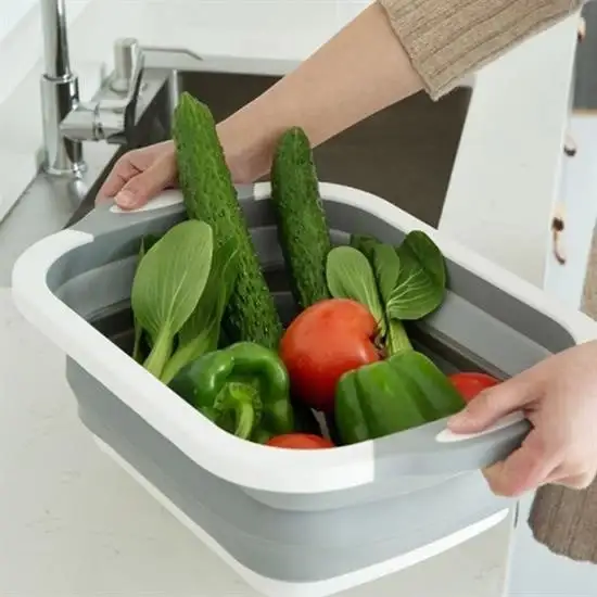 Katlanabilir Süzgeçli Kesme Doğrama Tahtası Badya Leğen