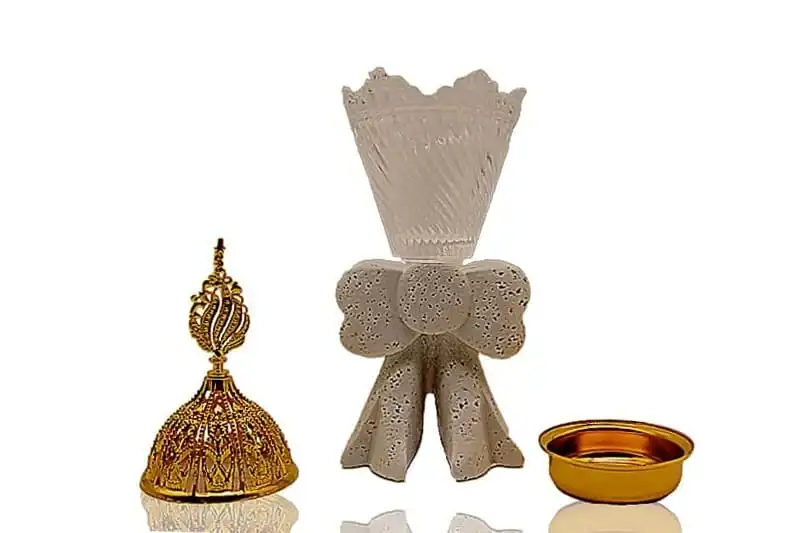 Papyon Detaylı Cam Üstlü Metal Buhurdanlık