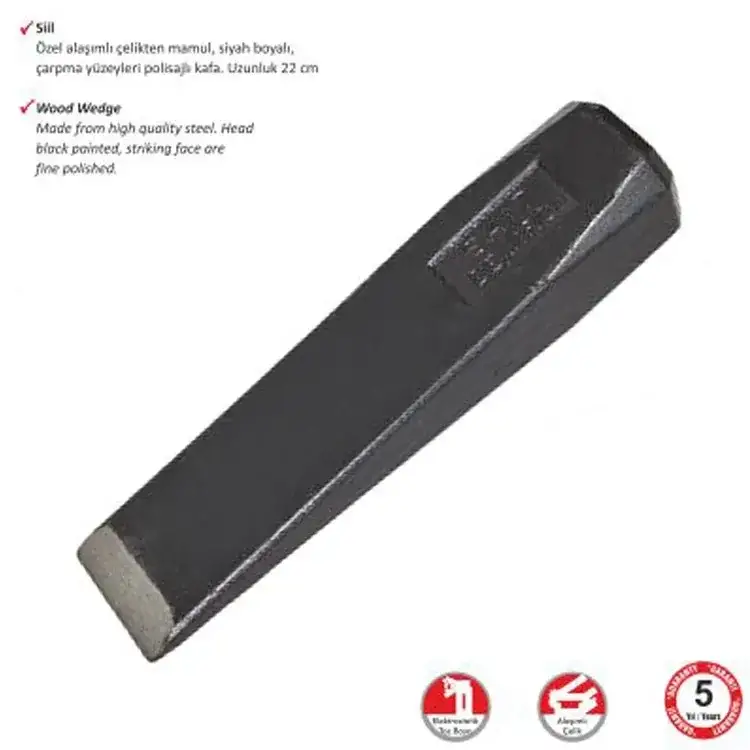 - Tasarım: Odun yarma işlemi için optimize edilmiş özel bir tasarıma sahiptir. Sivri ucu ve geniş bıçak yüzeyi sayesinde odunları kolaylıkla yarabilirsiniz.
