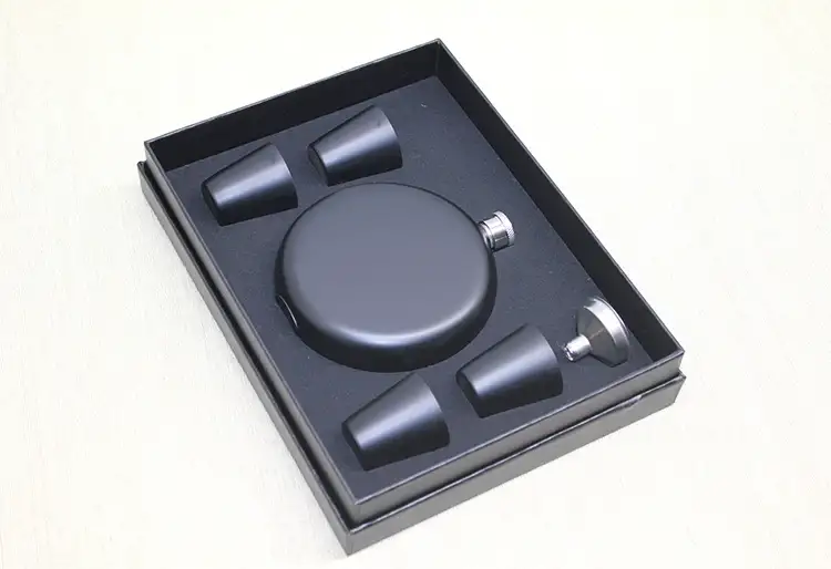 4 Shot Bardaklı Matara Seti Yuvarlak Siyah