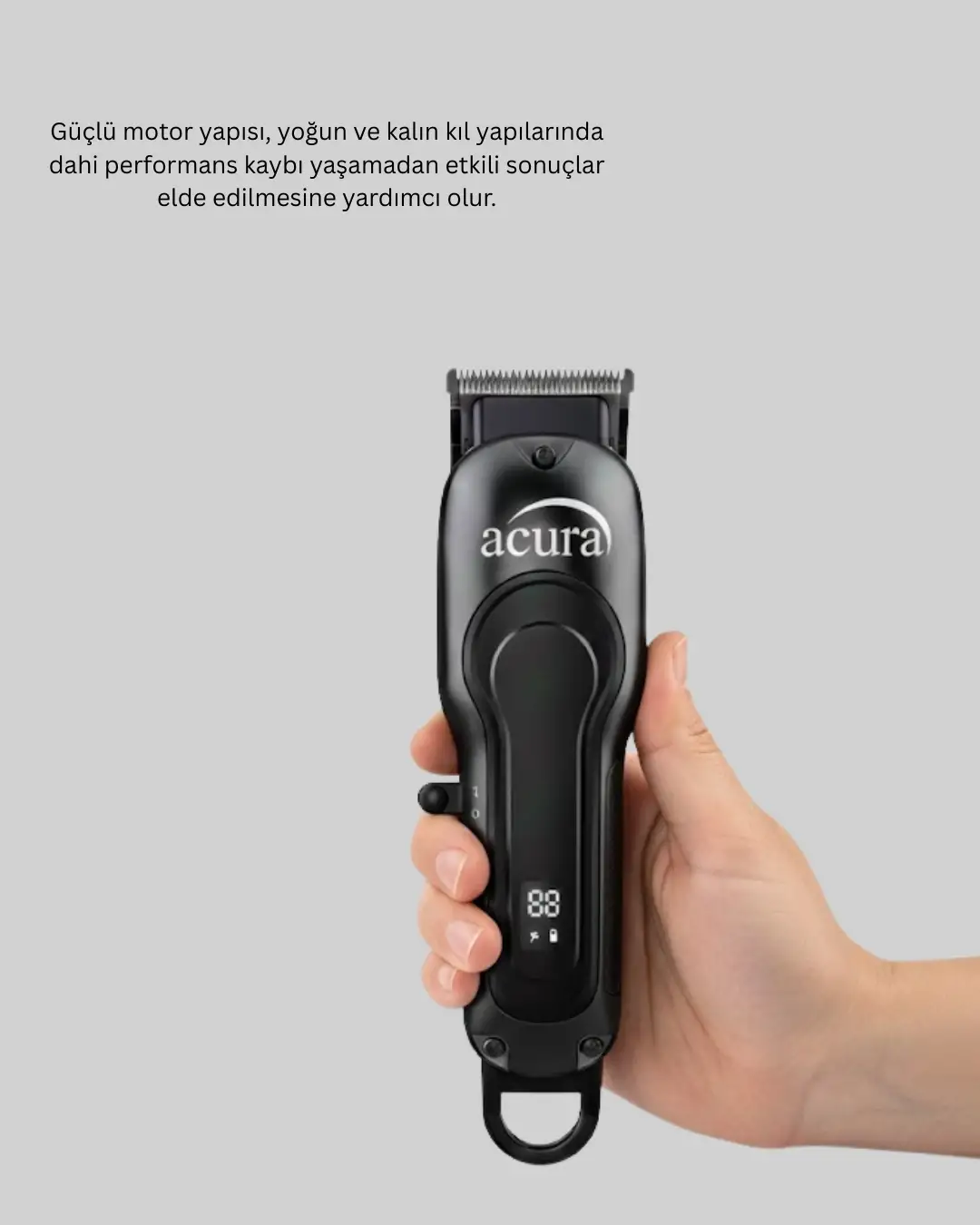 Hızlı şarj özelliği ve 2 saate kadar kesintisiz kullanım süresi ile yoğun kullanım temposuna uyum sağlar. Turbo modu, güçlü motoru ve keskin bıçakları sayesinde tek geçişte etkili sonuçlar elde etmenize yardımcı olur. Hem kişisel bakım hem de profesyonel kullanım için tasarlanan bu tıraş makinesi, fonksiyonel özellikleriyle günlük hayatı kolaylaştırır.