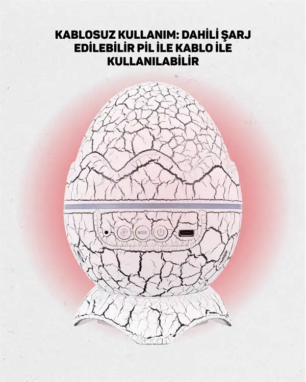 Bu ürün sadece bir ışık kaynağı değil, aynı zamanda dekoratif bir objedir. Dinozor yumurtası formu sayesinde çocukların ilgisini çekerken, ev dekorasyonuna modern ve eğlenceli bir dokunuş katar. Gece uykusuna geçişi kolaylaştırır, huzurlu bir atmosfer sunar. Partilerde, film gecelerinde ya da meditasyon zamanlarında kullanılarak çok yönlü bir kullanım sağlar.