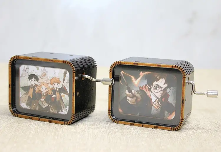 HARRY POTTER MÜZİK KUTUSUÜrün ÖzellikleriHarry Potter evreninin ikonik karakterlerinin yer aldığı bu müzik kutusu, 6x6 cm boyutundadır ve nostaljik kurmalı mekanizması ile klasik melodiler çalar. Ahşap yapısı sayesinde estetik ve dayanıklı bir tasarım sunar. Harry, Ron ve Hermione gibi karakterlerin illüstrasyonlarıyla süslenmiş bu özel ürün, film koleksiyoncuları ve Potterhead’ler için dekoratif ve duygusal bir objedir.Paket İçeriği1 adet Harry Potter temalı ahşap müzik kutusu
