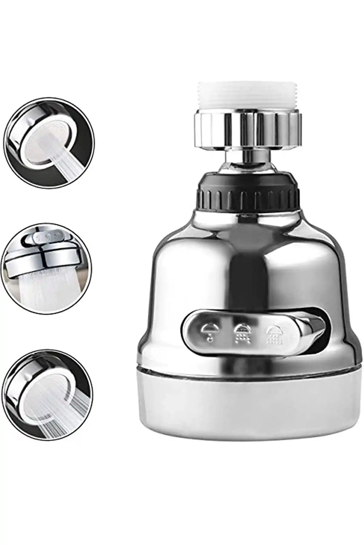 Krom 3 Fonksiyonlu Mutfak Lavabo Başlığı 360 Derece Döner Musluk Ucu