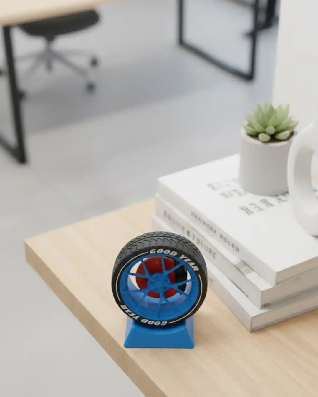 Dekoratif jant modeli, ofis masası ve çalışma alanları için tasarlanmış şık bir süs objesidir. Otomobil temalı dekor sevenler için hem es hem de anlamlı bir detay sunar. Masa üzerinde tek başına sergilendiğinde bile güçlü bir görsel etki yaratır. Ofiste, home office ortamında veya hediye olarak tercih edilebilir. Doğum günü, yeni iş hediyesi veya ofis açılışı için farklı ve özgün bir seçenektir.