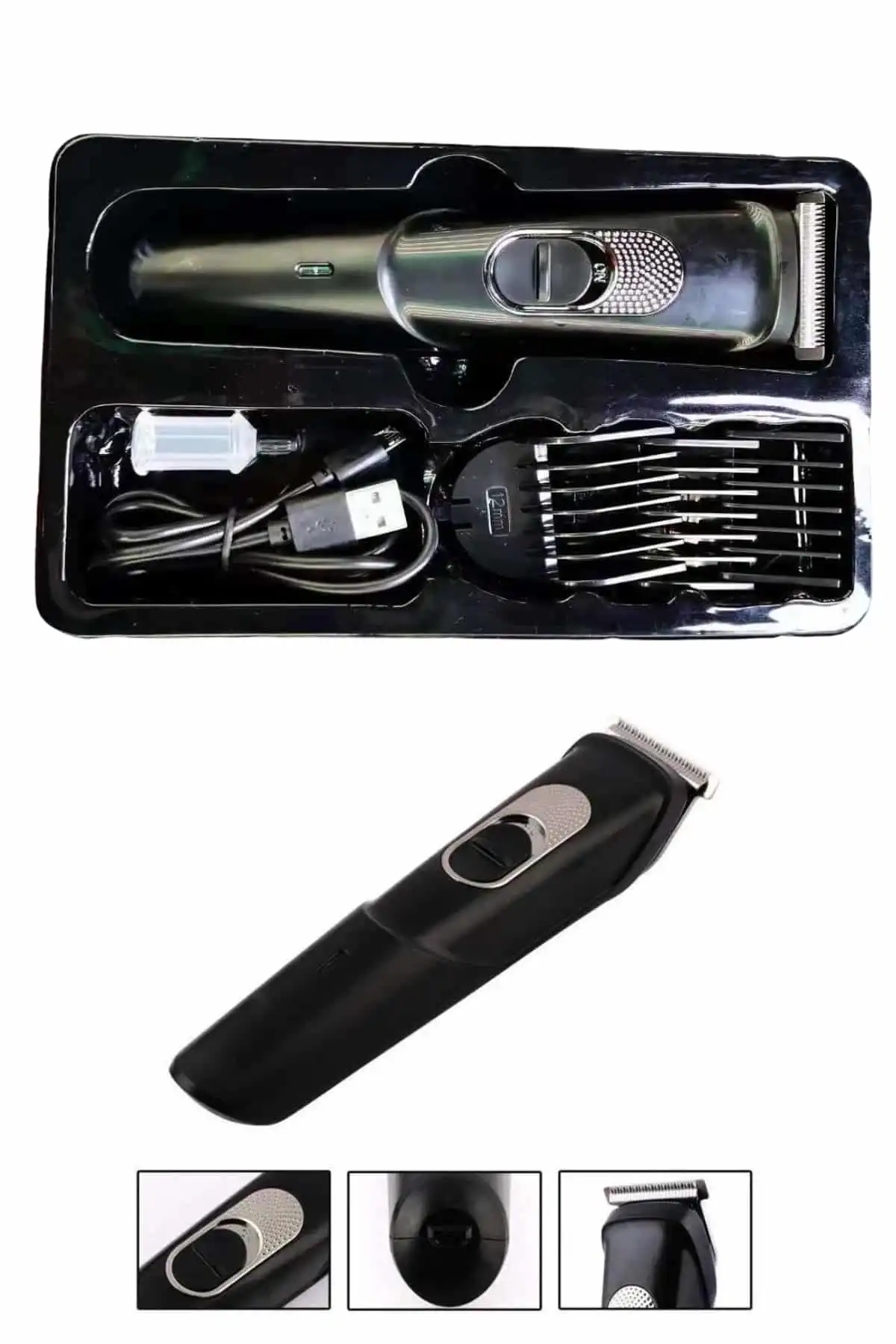 Ergonomik Şarjlı Saç ve Sakal Tıraş Makinesi - Kolay ve Hassas TıraşBu şarjlı tıraş makinesi, hem profesyonel kullanım hem de günlük bakım için mükemmel bir seçenek sunar. Paslanmaz çelik bıçakları, güçlü motoru ve ergonomik tasarımı ile rahat, hızlı ve etkili bir tıraş deneyimi sağlar.Öne Çıkan Özellikler: Paslanmaz Çelik Bıçaklar: Yüksek kaliteli çelik bıçaklar, keskin ve uzun ömürlüdür, tıraş esnasında mükemmel sonuçlar verir. Güçlü Motor: Sessiz, güçlü motoru sayesinde hem saç hem de sakal kesiminde yüksek verimlilik sunar. Ergonomik Tasarım: El ile rahatça kavranabilen yapısı, uzun süreli kullanımda bile konfor sağlar. Kablosuz Kullanım: Şarj edilebilir batarya sayesinde kablosuz kullanım rahatlığı sağlar, her ortamda kullanabilirsiniz. Uzunluk Ayarları: Farklı kesim uzunlukları için kayar tarak aksesuarı ile istediğiniz görünümü elde edebilirsiniz. Kolay Temizlik ve Bakım: Temizleme fırçası ve bakım yağı ile cihazın performansını uzun süre koruyabilirsiniz. Güvenlik: Elektrik fişini çıkarmayı unutmayın ve cihazın kullanımında güvenliği ön planda tutun.Aksesuarlar: 3 Adet Tarak Şarj Kablosu Temizleme Fırçası Bakım YağıTeknik Özellikler: Makina Boyutu (Uzunluğu): 15,5 cm