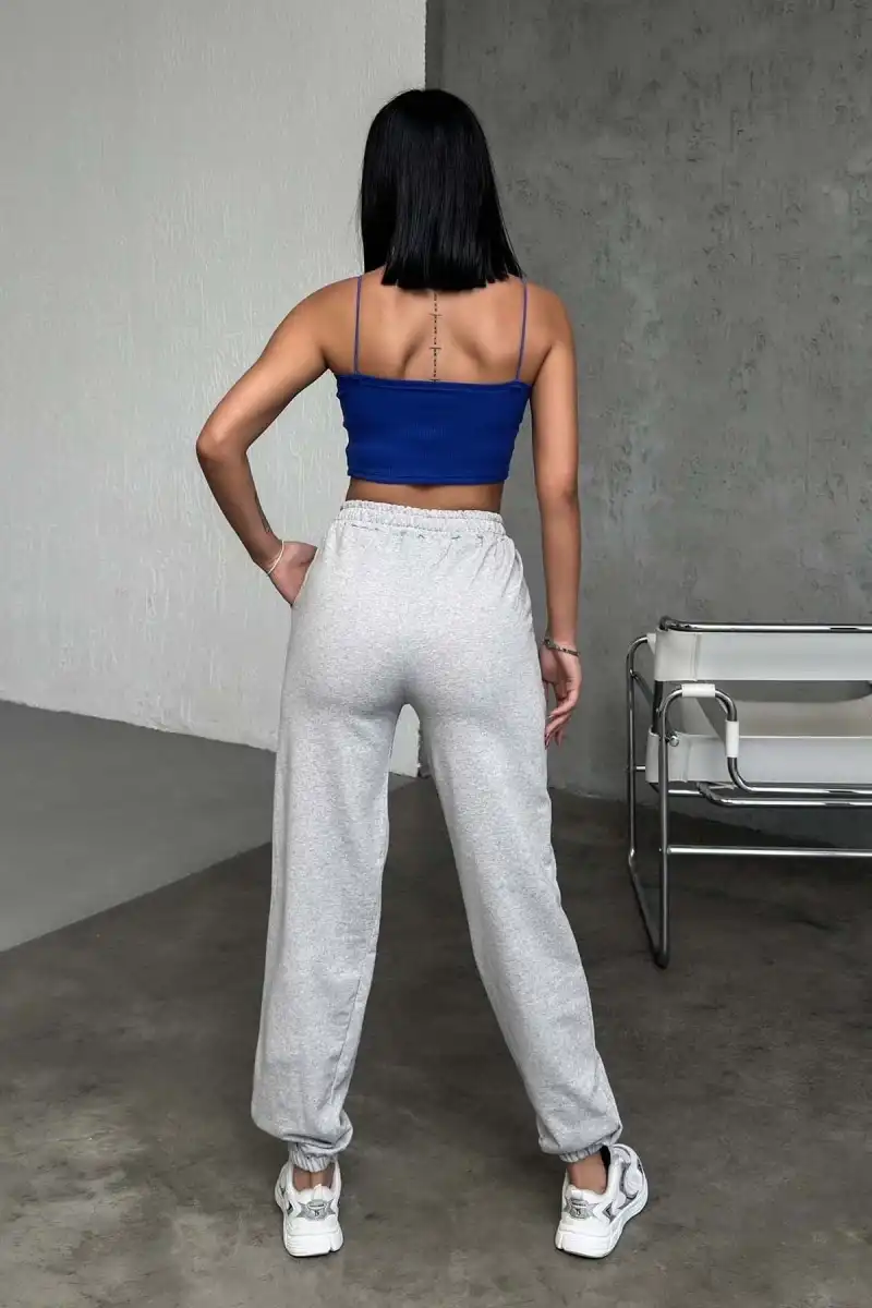 Rahatlığın Şıklığı Tarz Gri Paçası Lastikli Eşofman Altı