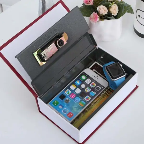 ŞİFRELİ KİTAP KASA Ürün ÖzellikleriŞifreli kitap kasa, gerçek kitap görünümünde tasarlanmış güvenli bir saklama kutusudur. Dış kısmı “The New English Dictionary” yazılı kapakla kaplanmıştır ve kitaplıkta sıradan bir kitap gibi durarak dikkat çekmez. İç kısmında çelik kasa bölmesi bulunur ve 3 haneli şifreleme sistemiyle korunur. Değerli eşyalarınızı, nakit nızı, takılarınızı ve belgelerinizi güvenle saklamak için idealdir. Hem ev hem de ofis kullanımı için uygundur. Kompakt boyutları sayesinde kolay taşınabilir ve gizlenebilir.Paket İçeriği1 adet Şifreli Kitap Kasa